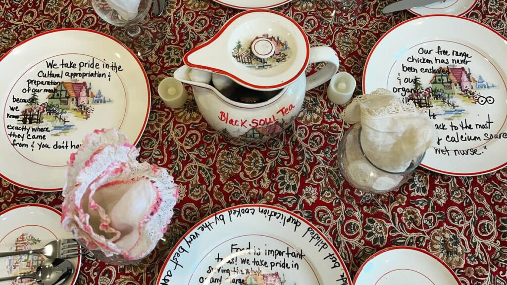 For many years now, John Avelluto has used trompe-l’œil and sculptural hyperrealism to unsettle the stereotypical trappings of Italian American identity, particularly its relationship to food. As in many other migrant communities, food functions as a vessel of memory and belonging, often bearing a disproportionate symbolic charge. Avelluto’s lifelike slices of acrylic mortadella and mounds of rainbow cookies confront this issue directly: they turn the charged history of foodways and their role in shaping communal narratives into something at once seductive and ridiculous. Viewers are forced to contend with the absurdity of articulating an entire national identity through piles of candies, pastries, and cold cuts elevated to the status of icons.