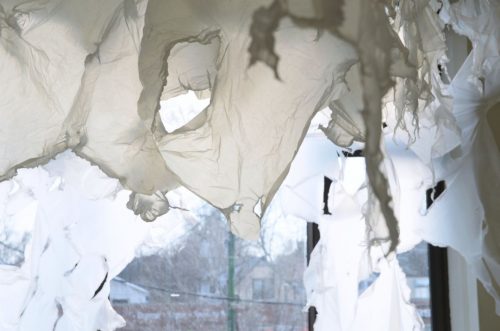Abena Motaboli is a Southern African born educator, visual artist, and writer based in Chicago. She grew up in Lesotho, a landlocked country in Southern Africa, before moving to the U.S where she obtained her bachelor’s degree in Fine Arts at Columbia College Chicago and at L’Institut Catholique de Paris in Paris, France. With a strong commitment to social justice work in the South and West sides of Chicago and being an immigrant, her artwork comments on displacement, immigration, the African diaspora, and the loss of the sense of home. In her intricate plastic installations and meditative line-work in her paintings, she uses ephemeral material such as plastic, tea, dirt, and coffee to comment on colonialism, past memories, and the culture of creating.