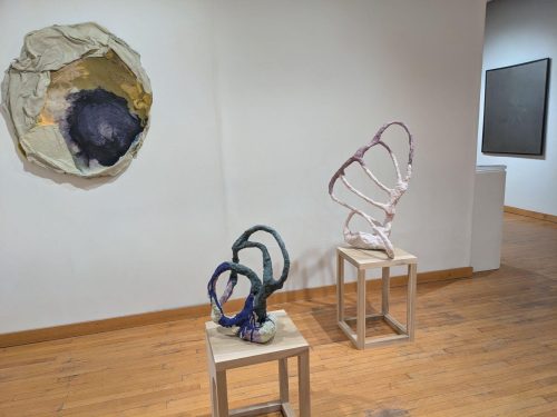 There are many thought-provoking shows in Philadelphia this July. Beginning at Fleisher Art Memorial, three innovative Philadelphia sculptors combine materials in unexpected ways to reflect on intimacy, vulnerability, and natural phenomena. At the Fabric Workshop in center city, artist John Jarboe brings her cabaret aesthetic to create a stunning immersive experience titled Rose Garden following her life and gender journey. In Kensington, at Peep Projects Todd Stong’s delicate drawings and wall-sized multi-panel monotype reflect on the complexities of history, contemporary life, and what the artist terms queer cultural production.