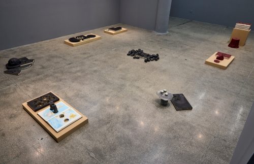 There is a hidden gem on view at Mana Contemporary in Jersey City—an art book group show of 15 artists carefully curated by the directors and curators of Monira Foundation and Mana Contemporary. The exhibition unfolds across two rooms. In the first space, the viewer encounters a dimly lit room of suspended tables uniquely designed by Kele McComsey. On each table, there is a carefully curated display of artist books—a rare opportunity to view this uniquely expressive form of art. During the run of the show, the curators periodically shift some books, while others are welcome to be handled. This is an incredible opportunity to see artist books and experience their magic. Blurring the lines between book and sculpture, these magnetic art objects have always been a curatorial challenge. They are meant to be experienced, unlike most other art pieces.