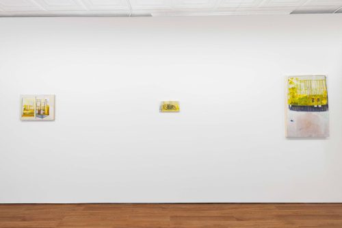 Anna Gregor often remarks, half in jest, that she wishes she were a poet. Poems, to her, come closest to immateriality; they exist in the mind and can be accessed anytime. In contrast, a painting is a unique object that must be seen in person, confined by paint, the artist’s technique, and the viewer’s presence. Gregor, a painter in New York City currently pursuing her MFA at Hunter, examines the divide between body and mind, material and immaterial, in her art. She sees a painting as having a dual nature: a physical object of paint sharing space with the viewer and an immaterial idea formed in the viewer’s mind. This mirrors the human condition, where body and mind coexist. Gregor says she often feels trapped by her physical form and its social labels—gender, age, race, and ability. Yet, she recognizes that her body is essential for her consciousness. For Gregor, making a painting is a confrontation with matter, a commitment to the material world while striving to go beyond its limits. Viewing a painting involves a similar struggle to find meaning in the artist’s creation. “ Without the physical painting, there is no idea. But without the idea, the painting is just inert matter,” she says. This intricate relationship is central to her solo show, Double Space, at D. D. D. D.