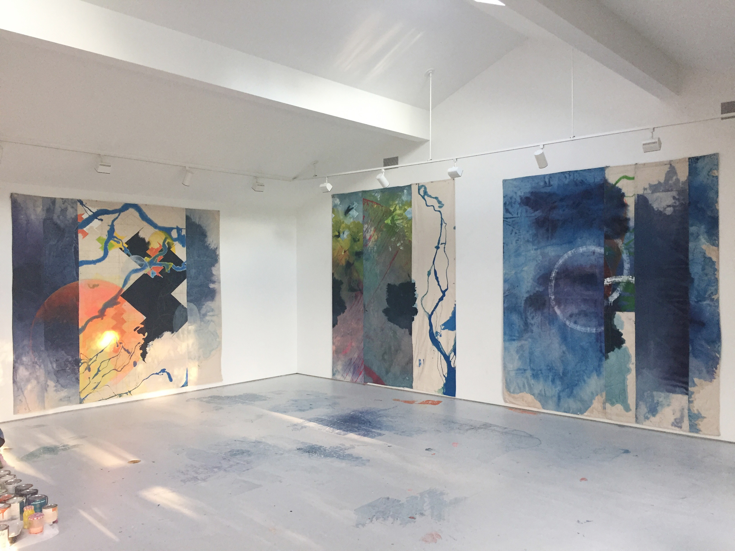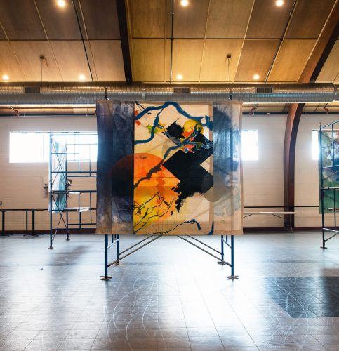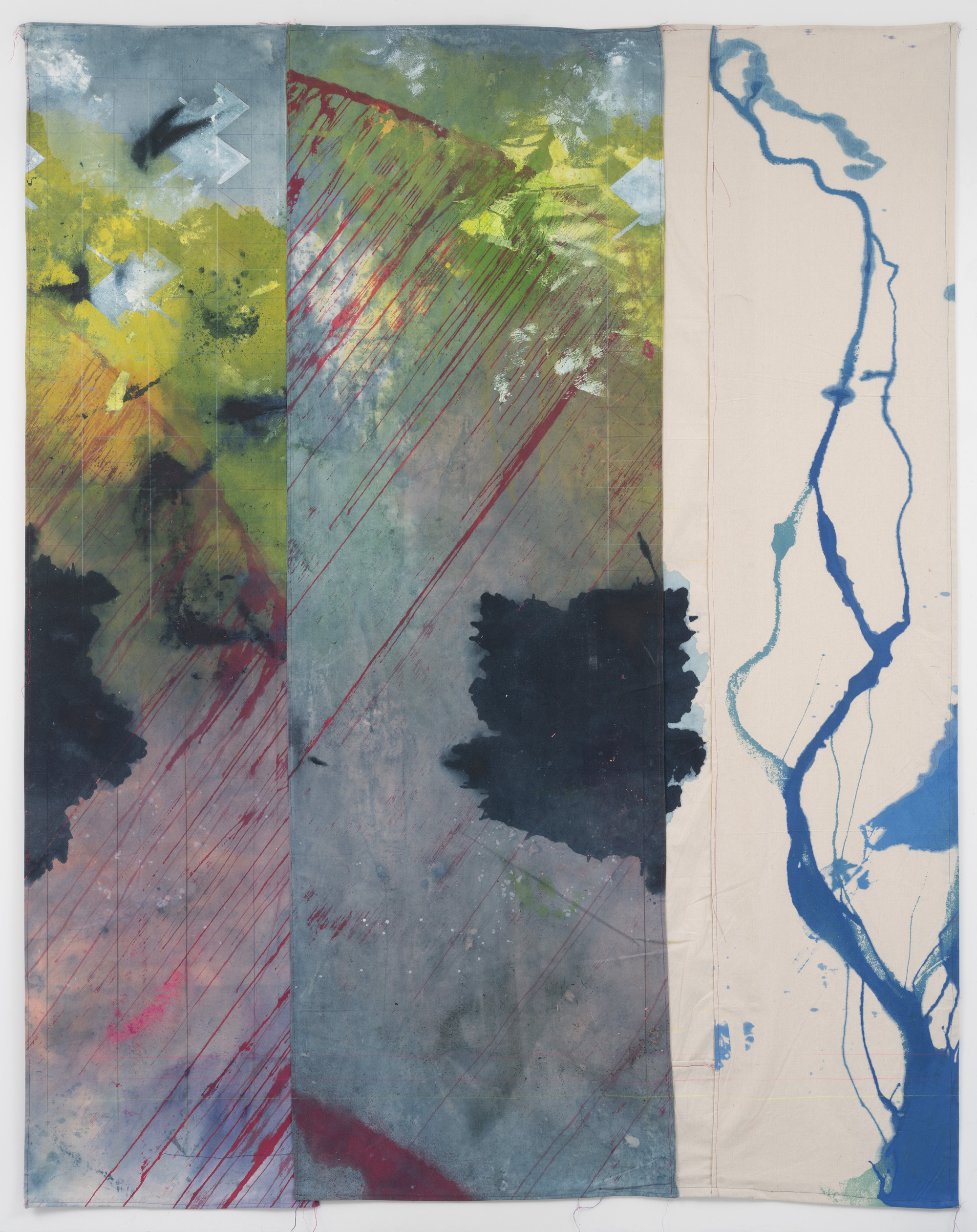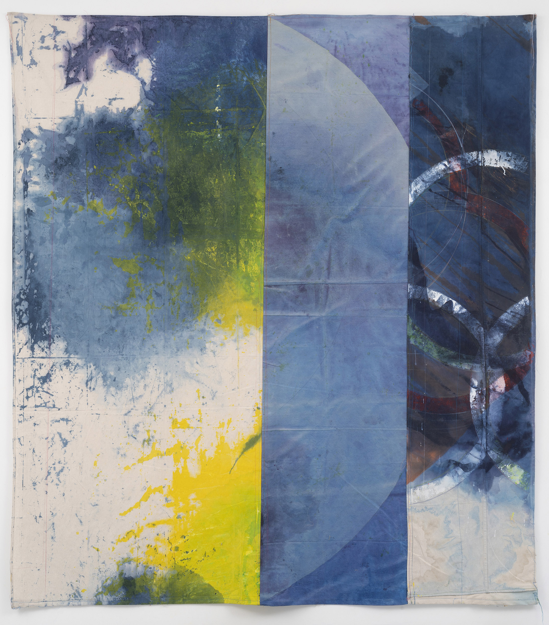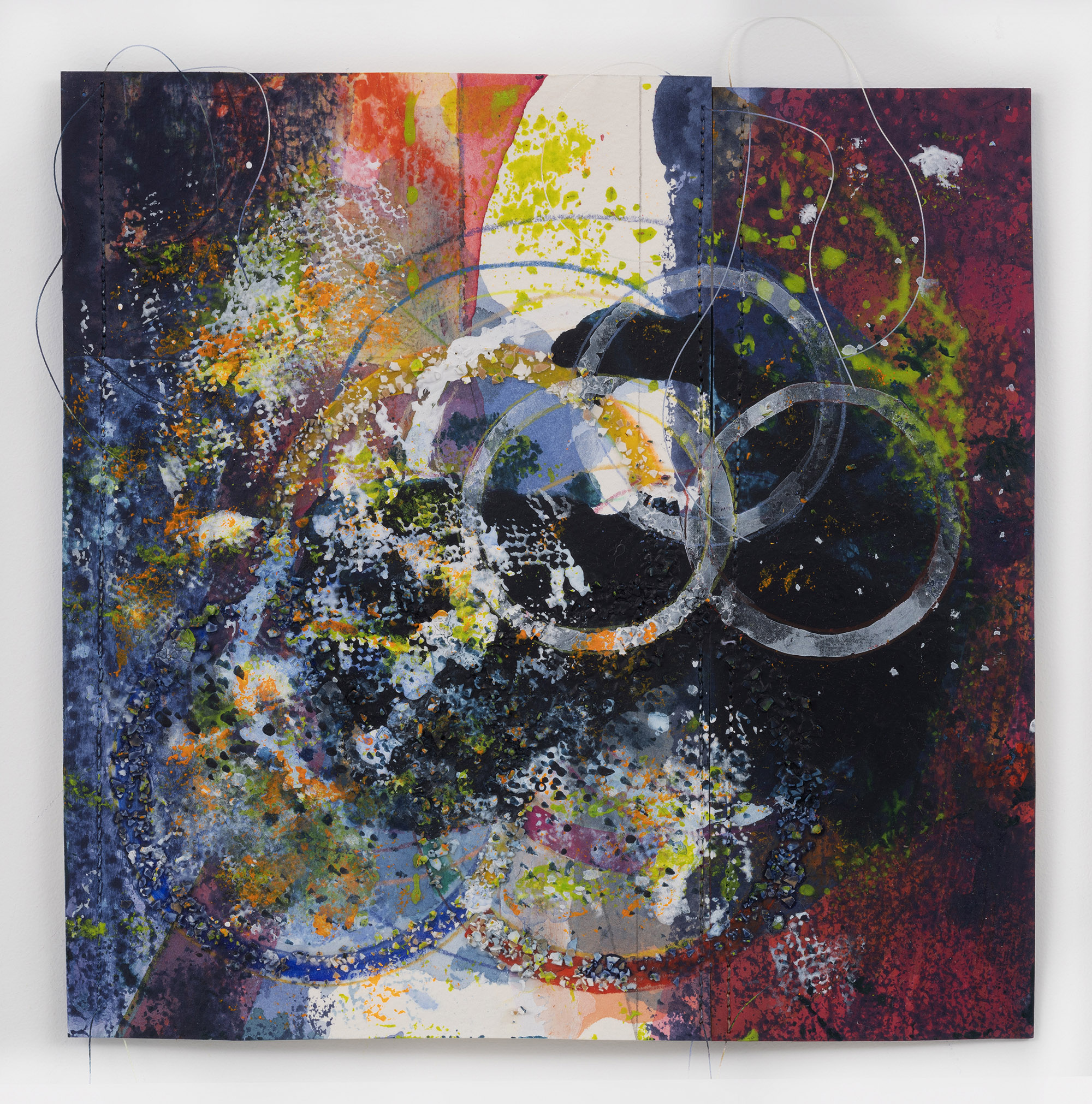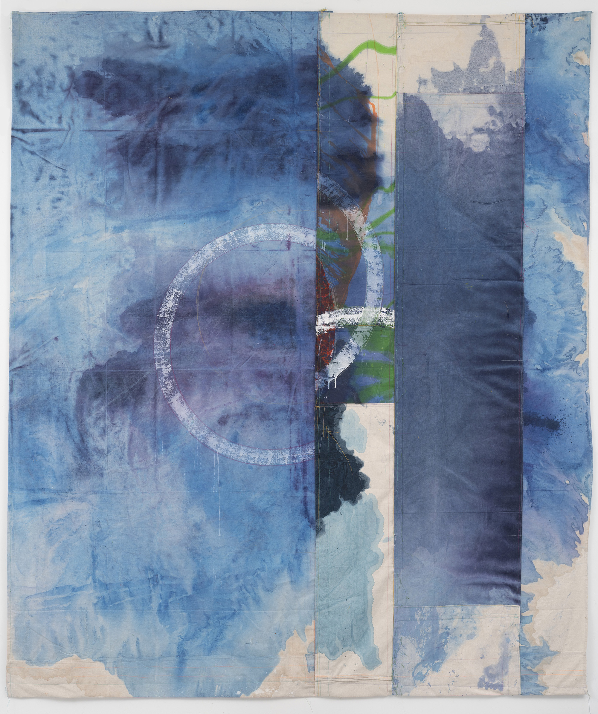 Anne Sherwood Pundyk’s solo exhibition, Beauty Out of Bounds, features a vibrant selection of her color-intensive works, many on public display for the first time. Her large, unstretched paintings reveal layers of stained drop cloth canvas interspersed with geometric shapes, cascades of color, bold stitching, sharp lines, and imprinted grids of paint. Her smaller pieces on stitched paper reflect the experimental approach of her larger works. A series of photographs that obscure handwritten journal entries bridge visual art and literature, underscoring the artist’s dual identity as a painter and writer. At the heart of the exhibition is Pundyk’s artist’s book, The Garden, which integrates printed pages and narratives prominently along the gallery walls. Her artworks collectively navigate themes of trauma and forgiveness. “By setting aside received wisdom, I make room for curiosity, investigation, and especially vulnerability”, Pundyk asserts. The exhibition spans both locations of East End Arts Galleries in the Arts District on Main St., Riverhead, NY, and includes various events designed to expand the dialogue.