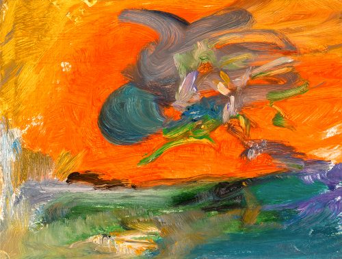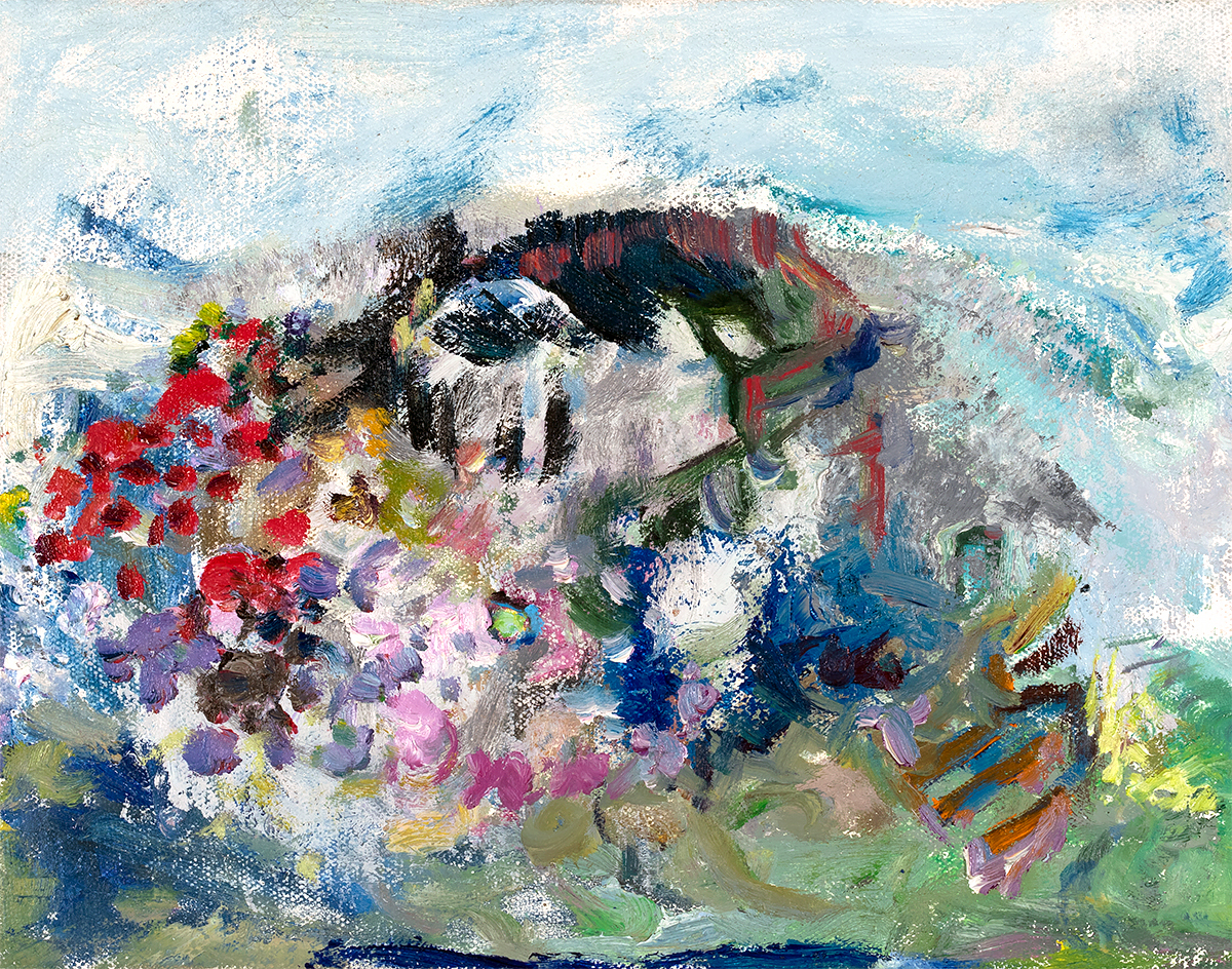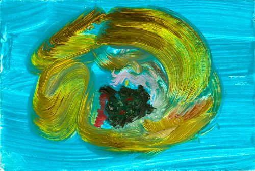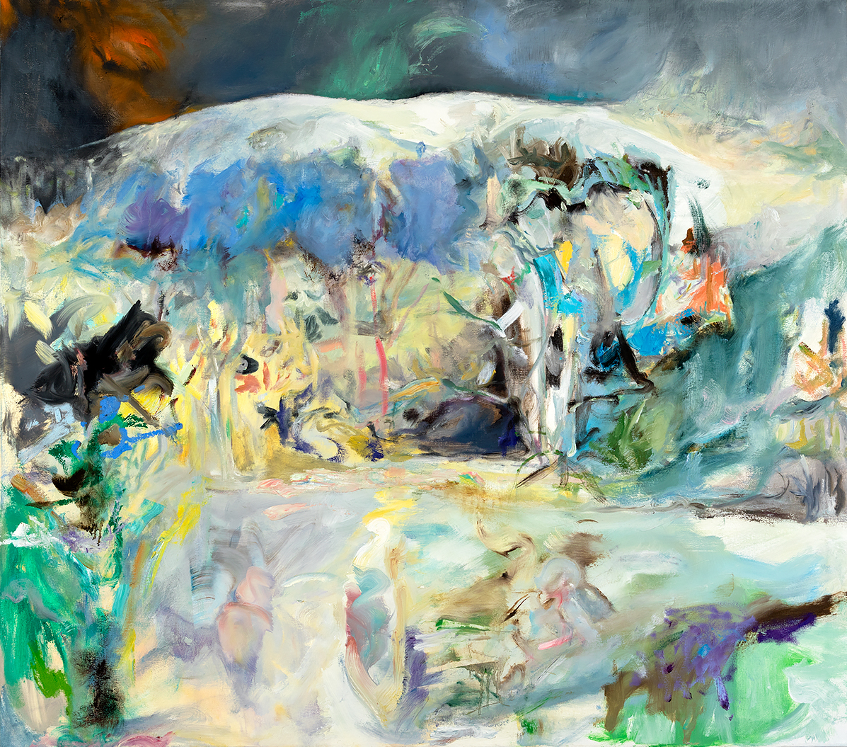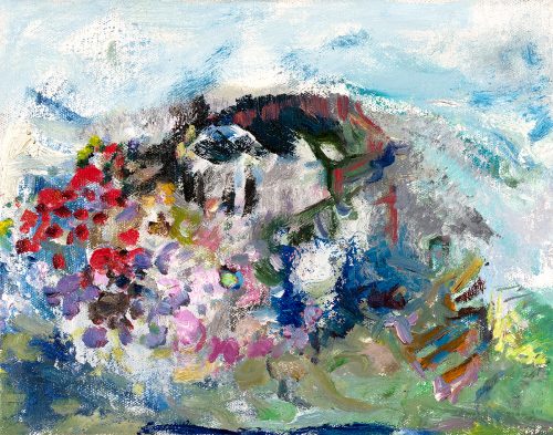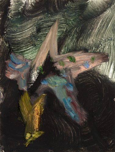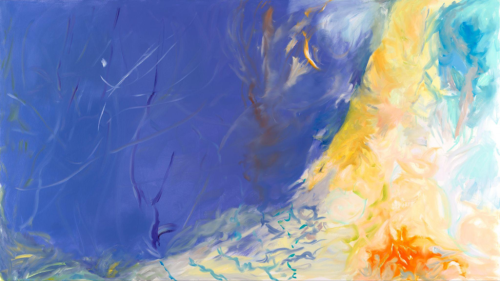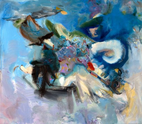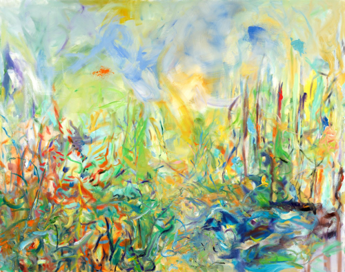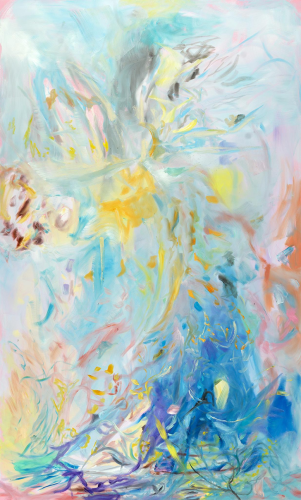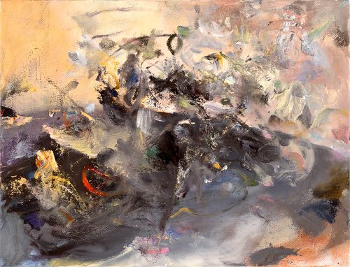 Psyche, Ashley Garrett’s exhibition of paintings at September Gallery in Kinderhook, has a mix of large and small oil paintings, and pastels. The small works have a restless energy emphasized by Garrett’s staccato mark-making. The large canvases give Garrett’s brush plenty of room to deliver longer, more fluid gestures. This freedom allows her paint strokes to slide over and under each other in a flow that can give her compositions a quiet intensity, like tall grass seething in a high wind. Garrett has lightened up her palette to include more pinks and a range of whites and pale grays.