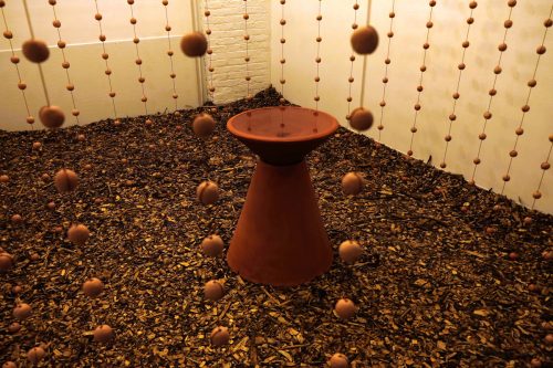 In unstable and changing times, haunted by a pandemic and conflicts unfolding worldwide, the installation by artist Bel Falleiros creates an introspective space that allows us to pause and reflect on how we relate to ourselves and the environment. Presented at The Border Project Space and curated by Jamie Martinez, “To Ripple with Water” is an invitation to be present, to disconnect from the frantic times we live in, and reconnect to our bodies and to the earth, in a quietly performative experience.