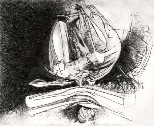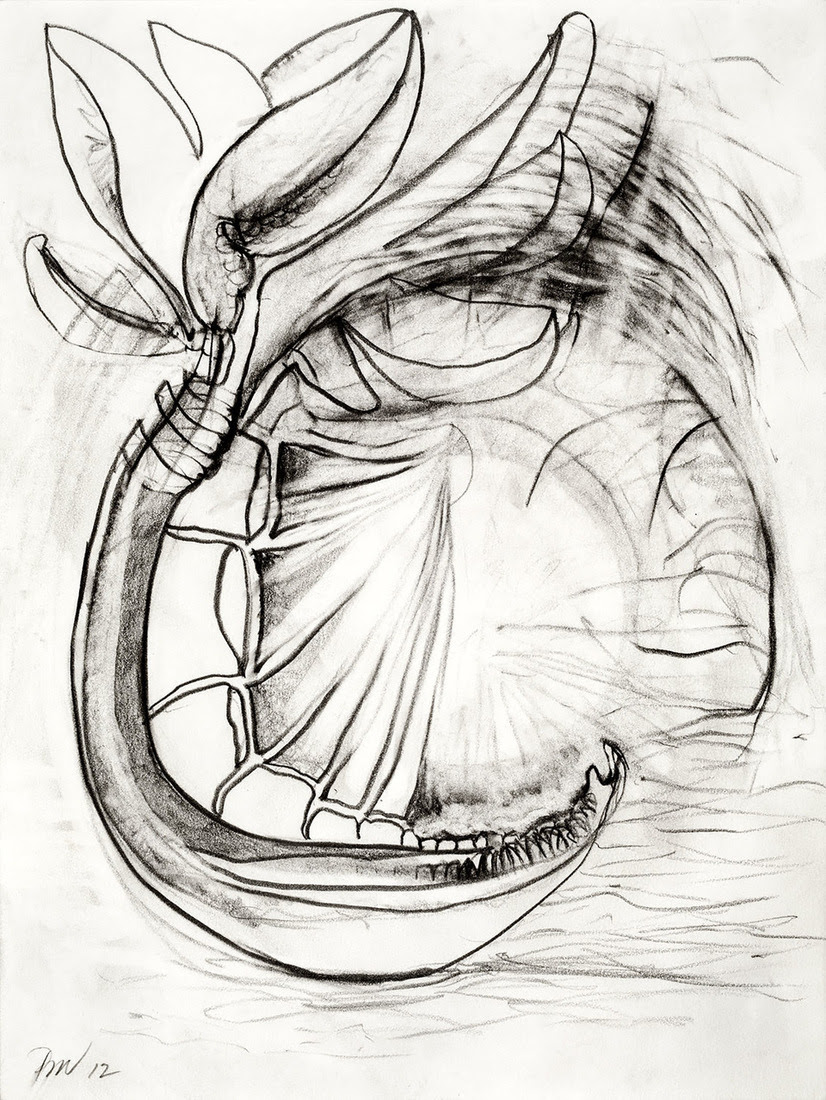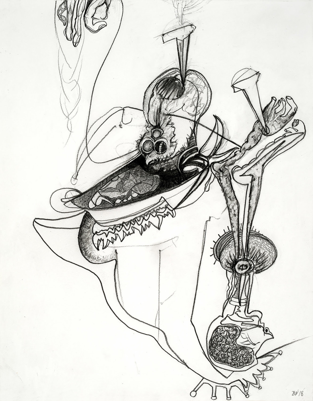 Brian Wood’s drawings are literally visionary. They derive from what the artist describes as a “trance-like” state, where the ego is consumed by the image, as the inner mind and hand become vital conduits for arising images. This inner process results in drawings that invoke nuanced mental states, fragmented memories, and perhaps most important, a glimpse at the unknown. Holland Cotter wrote in his NY Times review of Brian Wood’s 2014 solo show Enceinte that the artist creates “a kind of Symbolist world in which emerging into life and being devoured by it are part of the same inexorable process.” In a cynical age with ubiquitously ironic art, this unabashed approach to the spiritual elements in the process of art making is quite refreshing.