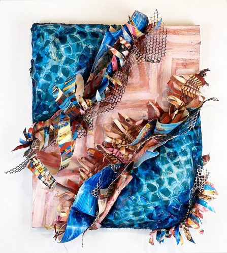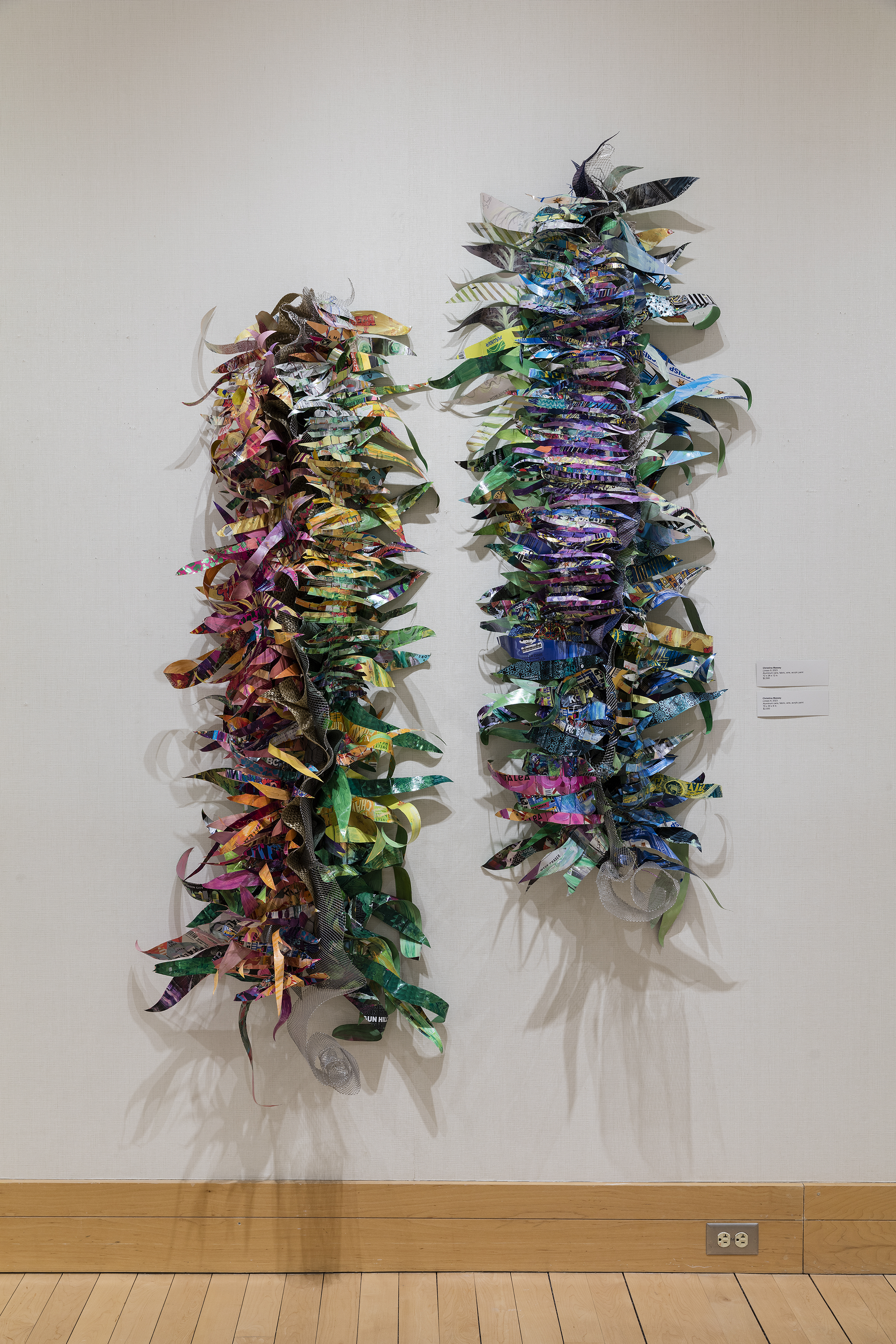 Imagine nature got hacked. If it could rewrite its own DNA—absorbing industrial waste, pixels, and plastic—what would it become? Welcome to Biophilia. This six-artist exhibition at the Flinn Gallery in Greenwich, CT, curated by Ellen Hawley, doesn’t just depict nature—it reimagines and reconstructs it. The organic and the artificial no longer exist as opposites. Featuring Carol Bouyoucos, Julie Evans, Loren Eiferman, Christina Massey, Heide Follin, and Sui Park, Biophilia brings together artists who push past nostalgia for an untouched Eden to present nature as something restless, resilient, and constantly evolving. The result is a visual feast—bold, kinetic, and utterly alive. This is no polite, whisper-in-the-gallery experience. It lunges, sprawls, and twists. It pulses with energy, daring you to chase its shifting forms.