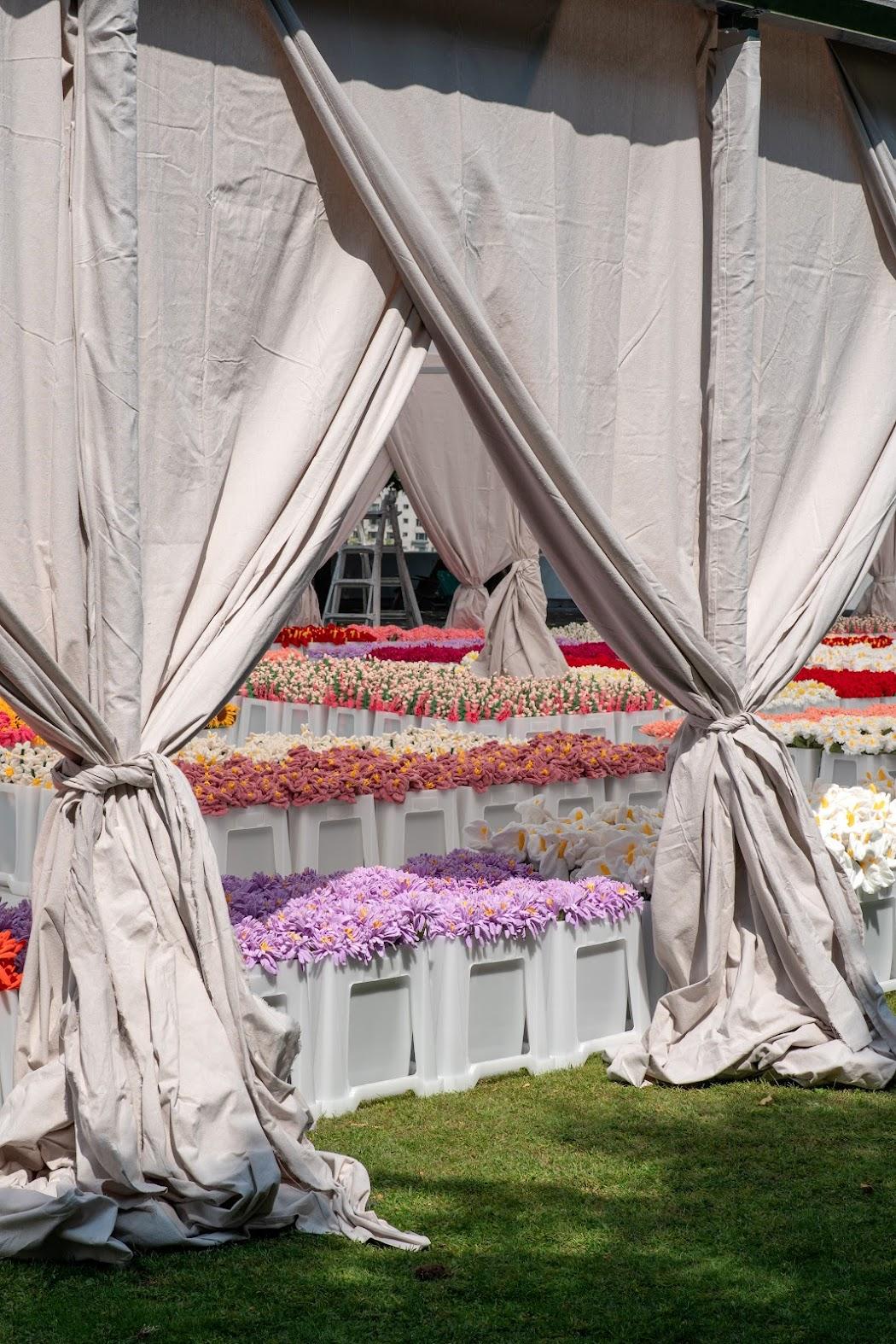 CJ Hendry’s recent Flower Market installation, initially planned for September 13-15 on Roosevelt Island, was shut down by police due to overcrowding and quickly relocated to Brooklyn. The event was both a celebration and a symptom of our evolving art world. Hendry, known for her hyperrealistic drawings of everyday objects and her massive Instagram following of over 800k, collaborated with beauty brand Clé de Peau Beauté to pair their perfume scents with plush flower sculptures. Visitors could take one flower for free and buy additional ones for $5 each, creating Instagrammable bouquets to share with friends.