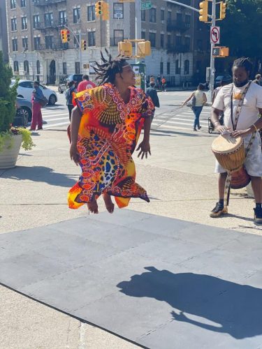 PLG Arts (Prospect Lefferts Gardens Arts), in collaboration with Davalois Fearon Dance (DFD), presents Music and Dance at Parkside Plaza, an outdoor, block party-style event that celebrates the rich Caribbean heritage of Flatbush/ Prospect-Lefferts Gardens (PLG) and the growing community of local artists. The free performance will take place on October 17th at 2 pm at Parkside Plaza, located at Parkside Ave and Ocean Ave, Brooklyn, NY 11226. The event will feature live drumming by Ryan Greenidge, Agyei Phillip, and Rasaan Green, and the music of composer and woodwind player Mike McGinnis, Dancehall, and Reggae facilitated by D.J. Ayanna Heaven, and a site-specific performance of Finding Herstory and community dance-along led by Davalois Fearon, the founder and artistic director of Davalois Fearon Dance Company. In addition, she shares with Art Spiel her reflections on this public project.