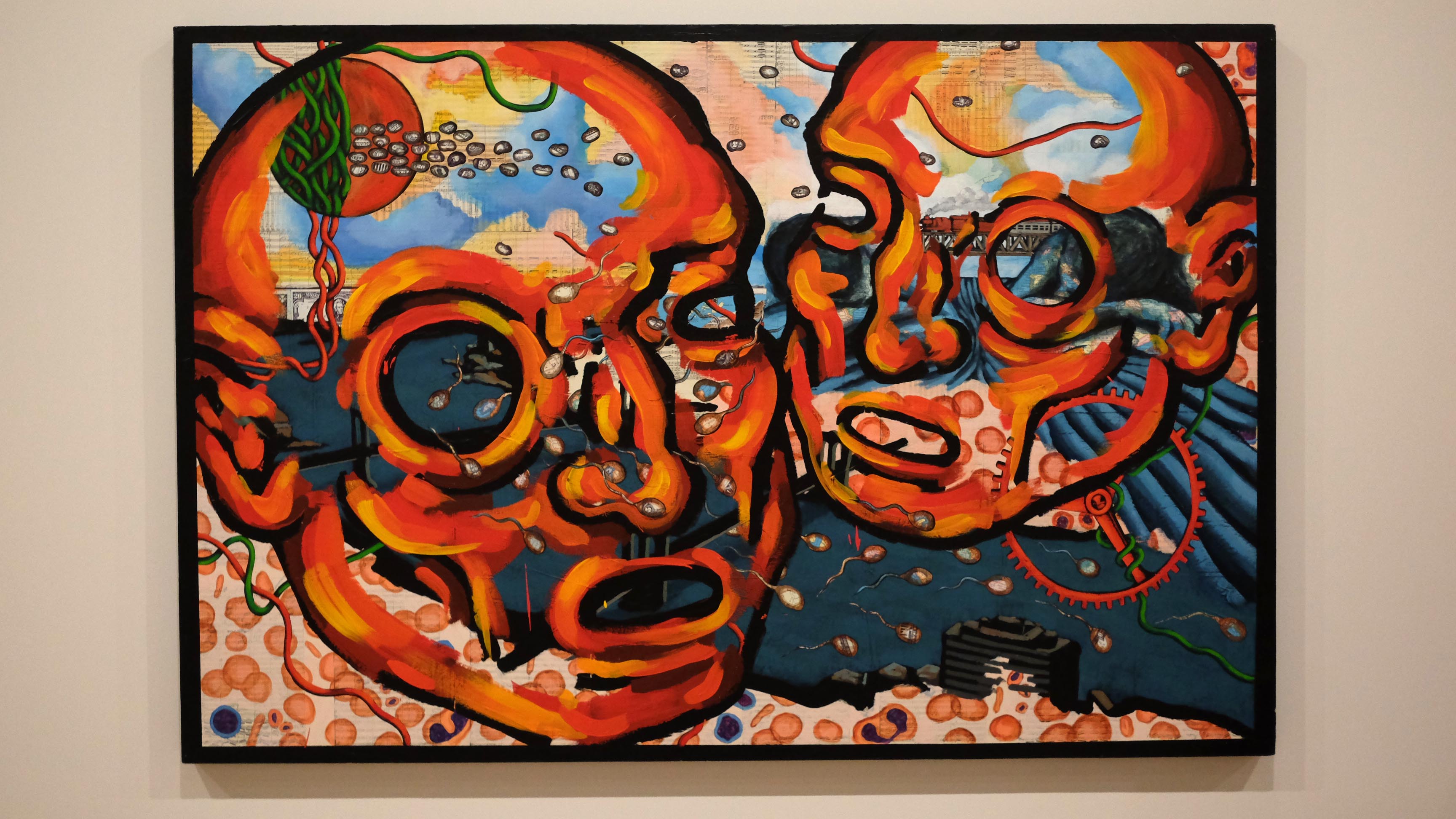 [caption id="attachment_1770" align="alignnone" width="500"] David Wojnarowicz , Untitled (Face in Dirt), 1991 (printed 1993). Gelatin silver print, 19 × 23 in. (48.3 × 58.4 cm). Collection of Ted and Maryanne Ellison Simmons. Image courtesy the Estate of David Wojnarowicz and P.P.O.W, New York[/caption]Like a gut-punch for the eyes, The David Wojnarowicz show History Keeps Me Awake at Night at the Whitney Museum of American Art hits the viewer with a visceral, almost-physical jolt of emotion. Bodies are veiled in photographic shadow and light, primary colors leap off large canvases stuffed with collage, lighted globes and spoken words combine to map out the passion and rage experienced by the artist in his relatively short life. There is such variety in the exhibition that my friend and I almost missed a whole gallery, mistaking it for a different artist’s work.