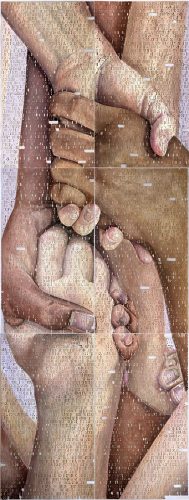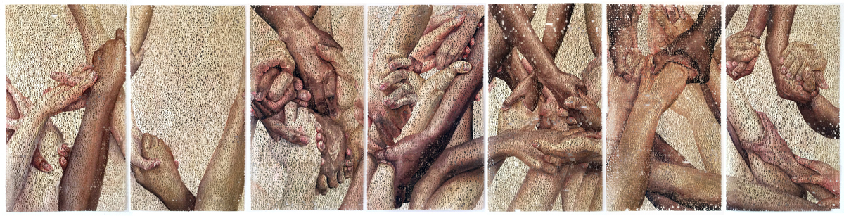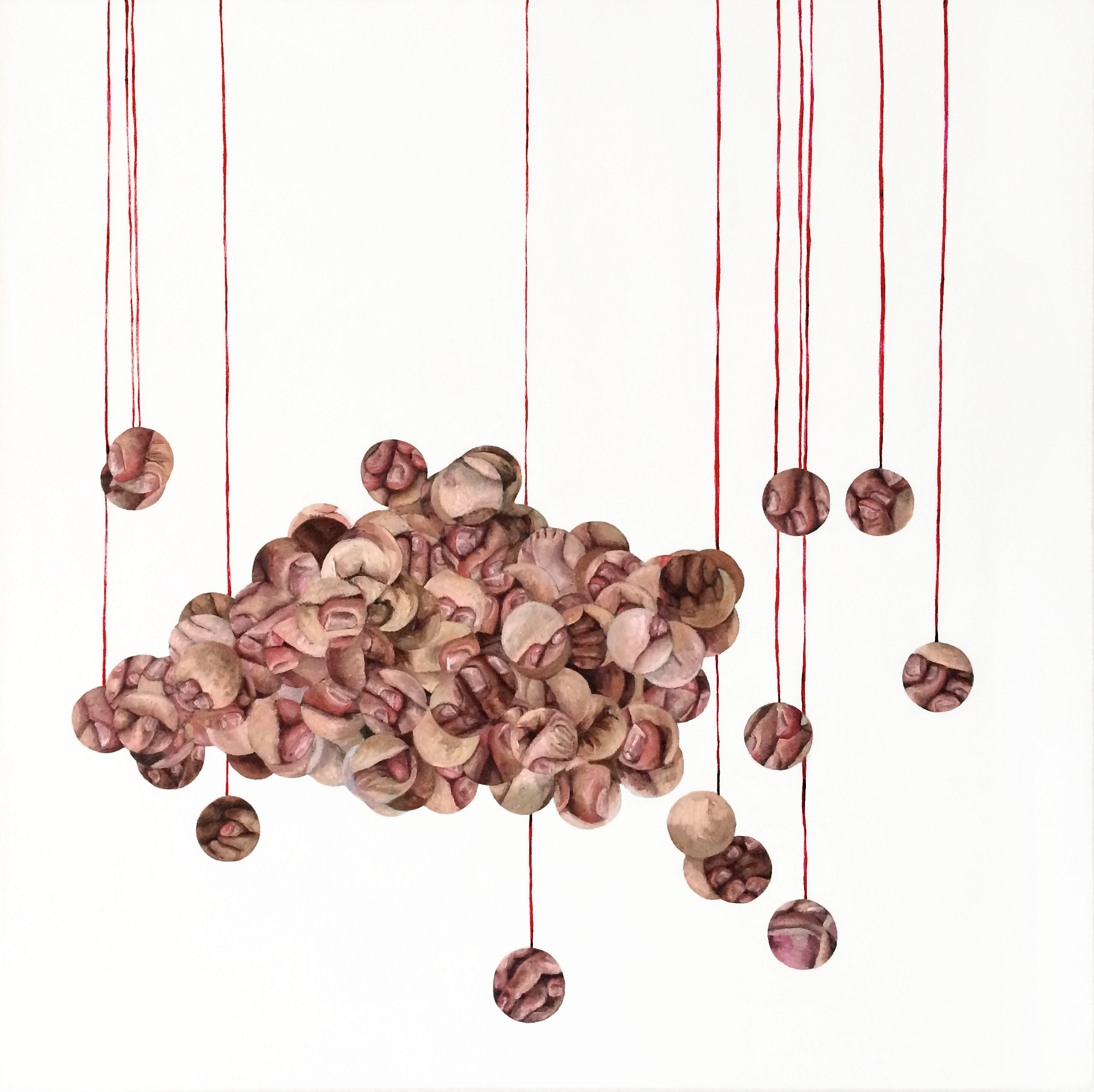 Diana Schmertz has always been interested in systems that people create to organize what they perceive in the world around them — based in science, religion, psychology, philosophy or politics. The artist says that no matter how cerebral a system or an idea may appear, it is always experienced through our physical senses and in order to communicate balance between reason and senses, she paints imagery of the body expressing emotional understanding juxtaposed with systems of verbal and/or mathematical reasoning. In Domestic Brutes, the women group show at Pelham Art Center Diana Schmertz shows a painting installation. Her virtual artist talk hosted by PAC is scheduled for October 8th.