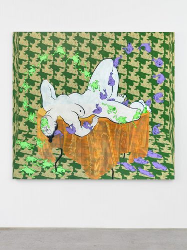 Human civilization has always maintained an uneasy relationship with female monstrosity—just watch the cavalcade of sirens, witches, harpies and hags that stalk the perimeters of every major mythology on earth, luring hapless men to their deaths. This hyper-visible, oft-storied, but deeply erasive marginalization has long plagued the non-normative woman; however, there’s a certain freedom in the fringes. Take Baubo, the Orphic goddess of chaos and mirth, whose paunchy, wizened appearance belied a frisky bawdiness that ancient Greeks adored. Ebecho Muslimova’s ‘Fatebe’ character, whom she has been drawing since 2011 and features vivaciously in her latest solo exhibition, TRAPS!, at Magenta Plains, New York, builds on Baubo’s cultural legacy with appropriately grotesque panache, taking a wide-eyed, manic approach to the tandem joys and pitfalls of embodiment.