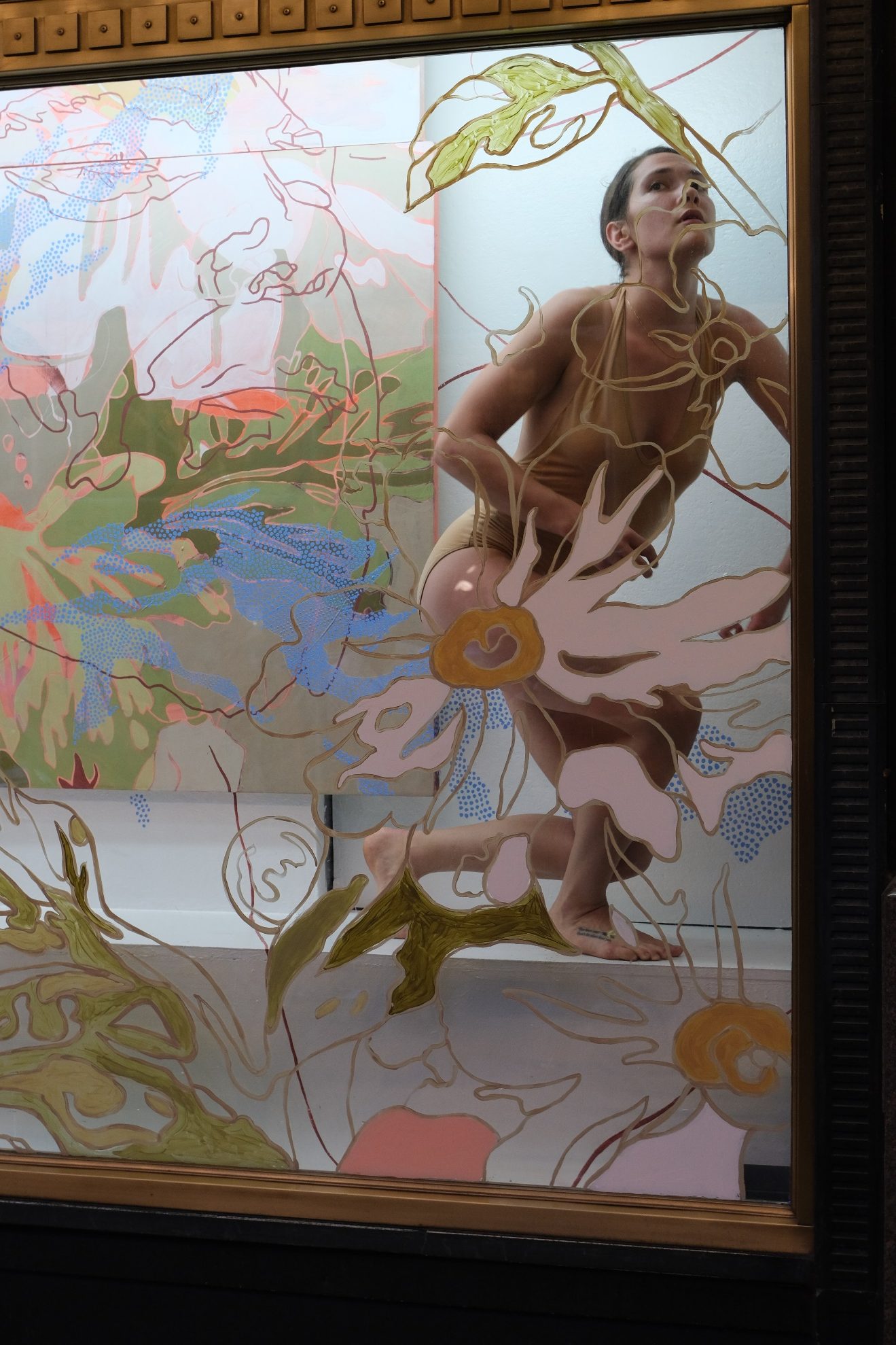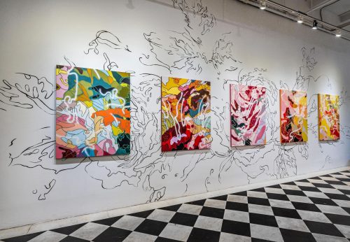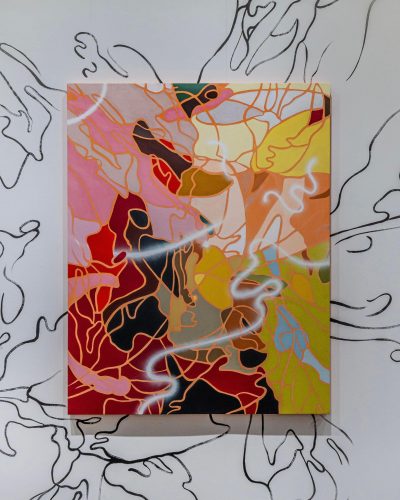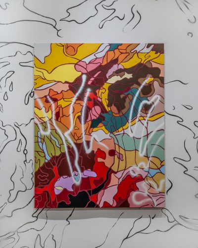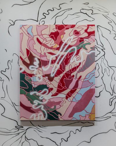 Brooklyn-based artist Evan Paul English uses a small viewfinder to discover compelling compositions within the fabrics he collects and enlarges them to abstract paintings of different scales, working across painting, sculpture, murals, and wallpaper. VIEWFOUND, his current solo exhibition in Brooklyn, features work along these lines and is on view at 324 5th Avenue through December 6th, 2021. Presented by Salt Gallery in collaboration with ChaShama, the show includes eight new works that translate American vintage floral design into paintings, referencing gender, sexuality, and class.