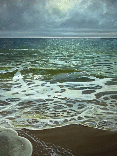 Getting to see the works of Frank Lind in person gives you an experience of a moment, the capture of a motion, and the building up of an atmosphere. Lind works “en plein air” within nature. Capturing immediate impressions and moments that captivate him, he then carries sketches to canvas. Stemming from the on-site sketches, the larger studio works take on a glow. Using traditional oil painting processes and many old master methods, both of Lind’s series displayed in this exhibition show the end result of a painter’s process.