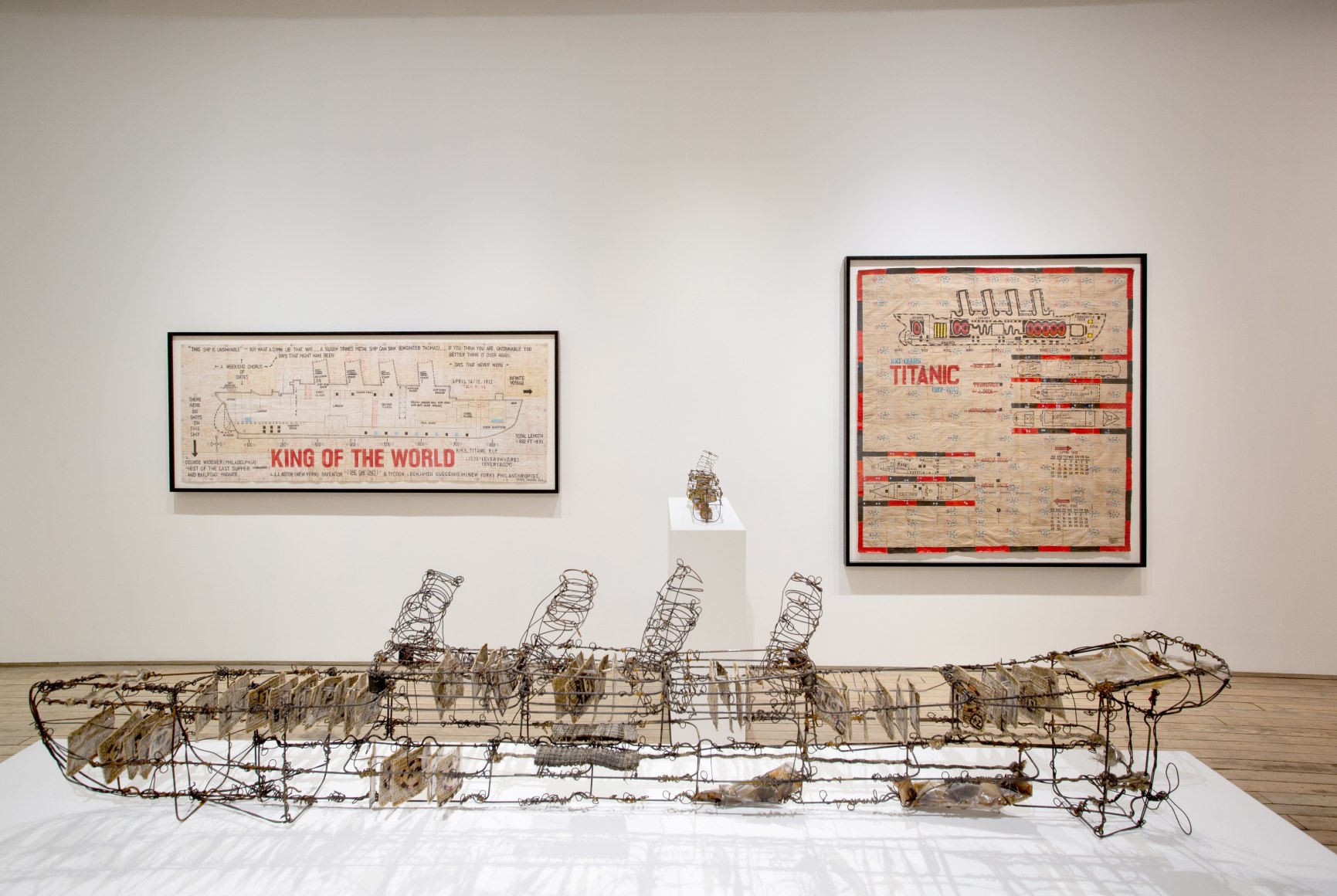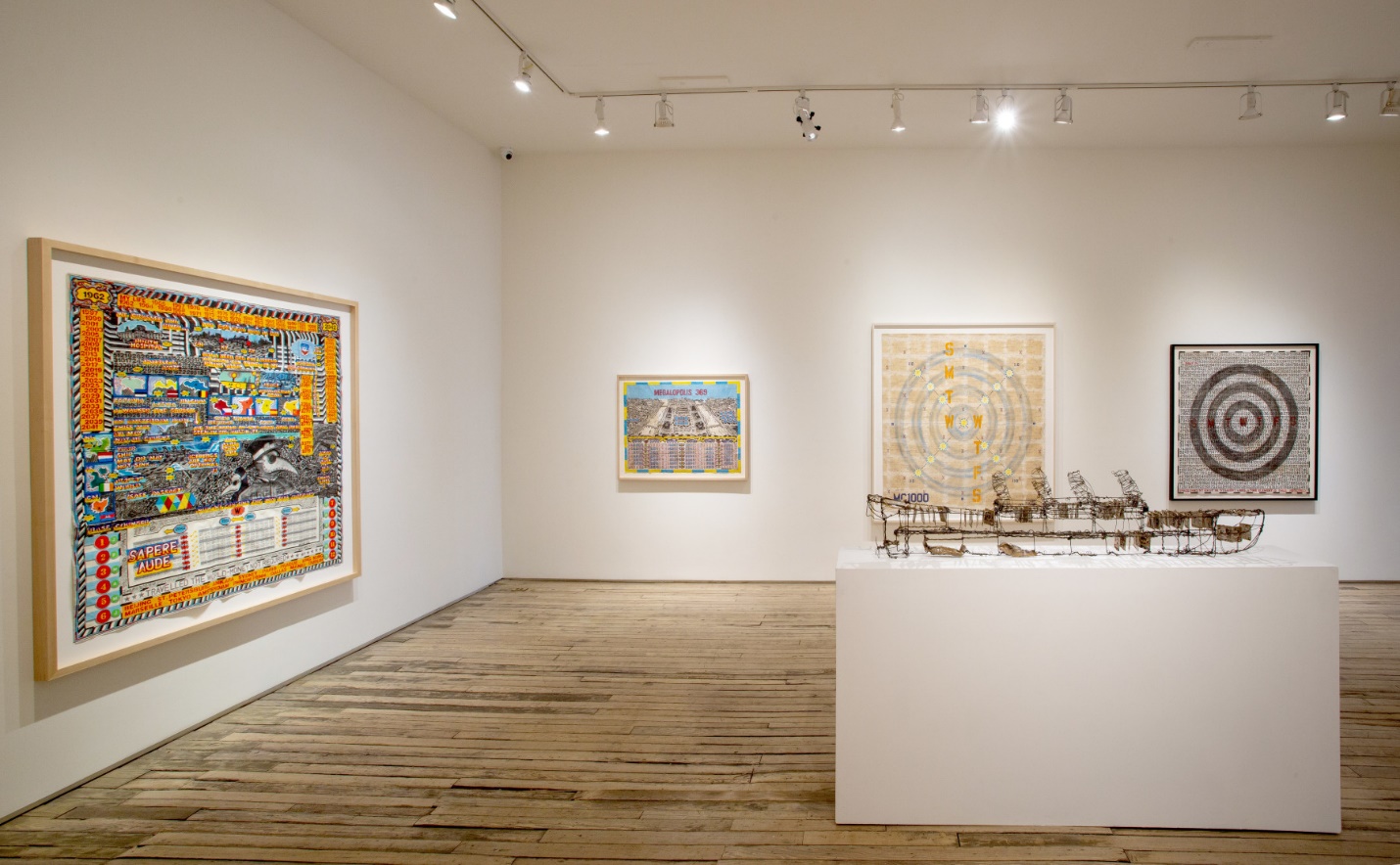 The riveting debut exhibition at Andrew Edlin showcases George Widener’s profound fascination with historical catastrophes, particularly the tragic sinking of the Titanic in 1912. The artworks on the wall, made of patched-together napkins and tea-stained scrolls, bear the marks of accidents, palimpsests, and esoteric knowledge, reminiscent of ancient manuscripts and enveloped in an aura of mystery. The elaborate numerical puzzles, complex wordplay, and prophetic visions informed by historical events become data landscapes that the viewer explores alongside the artist.