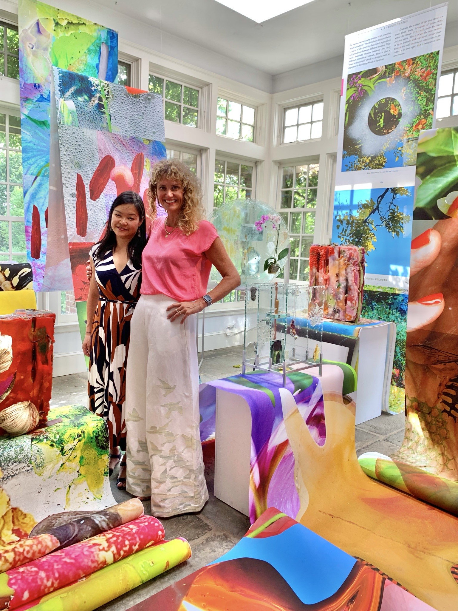Heidi Norton’s site-specific installation at Wave Hill examines the intricate links between humans and the natural world. Inspired by Wave Hill’s grounds and the Sun Porch’s architecture. Activated by sunlight, Norton’s installation is made of sculptures and large, vibrant photographic scrolls draping from the ceiling and undulating through the space. Norton says that the configuration of scrolls encompasses landscapes of present and past, incorporating recent photos that the artist took of the gardens, as well as archival images. Norton’s work draws on her rural upbringing by New Age homesteaders. She upcycles discarded plant clippings from Wave Hill’s gardens, repurposes compost and deconstructs past work, incorporating it into new pieces—speaking to sustainability, contemplating how memories are embedded in materials and landscapes, as well as how a sense of place is recorded through time and changes in the land. Heidi Norton with her site specific installation, The Edges of Everything at Wave Hill, July 16th – August 28th, 2022. Meet the Artist recording can be found here.