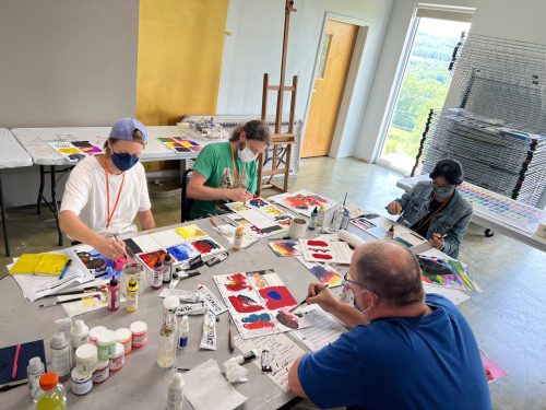 The Sam and Adele Golden Foundation Residency Program began as a dream of Sam Golden. Sam was a paint maker for most of his life at Bocour Artist Colors in New York City and in retirement, moved to upstate New York with his wife Adele. Sam was an incredibly restless retiree. Emma Golden, Sam’s granddaughter says that with the push of Adele, he called up his son, Mark Golden, and asked him to come help him make paint. That is how Golden Artist Colors started in 1980—in an old cow barn in rural New Berlin, New York. This fall I had the wonderful opportunity to be a resident at the Golden Foundation and after this deep experience I wanted to share with Art Spiel readers some insight into this unique residency by interviewing Emma Golden, who currently runs it. When he realized retirement wasn’t for him, he began making paint in a barn, delivering it to his artist-buddies’ studios in New York City.