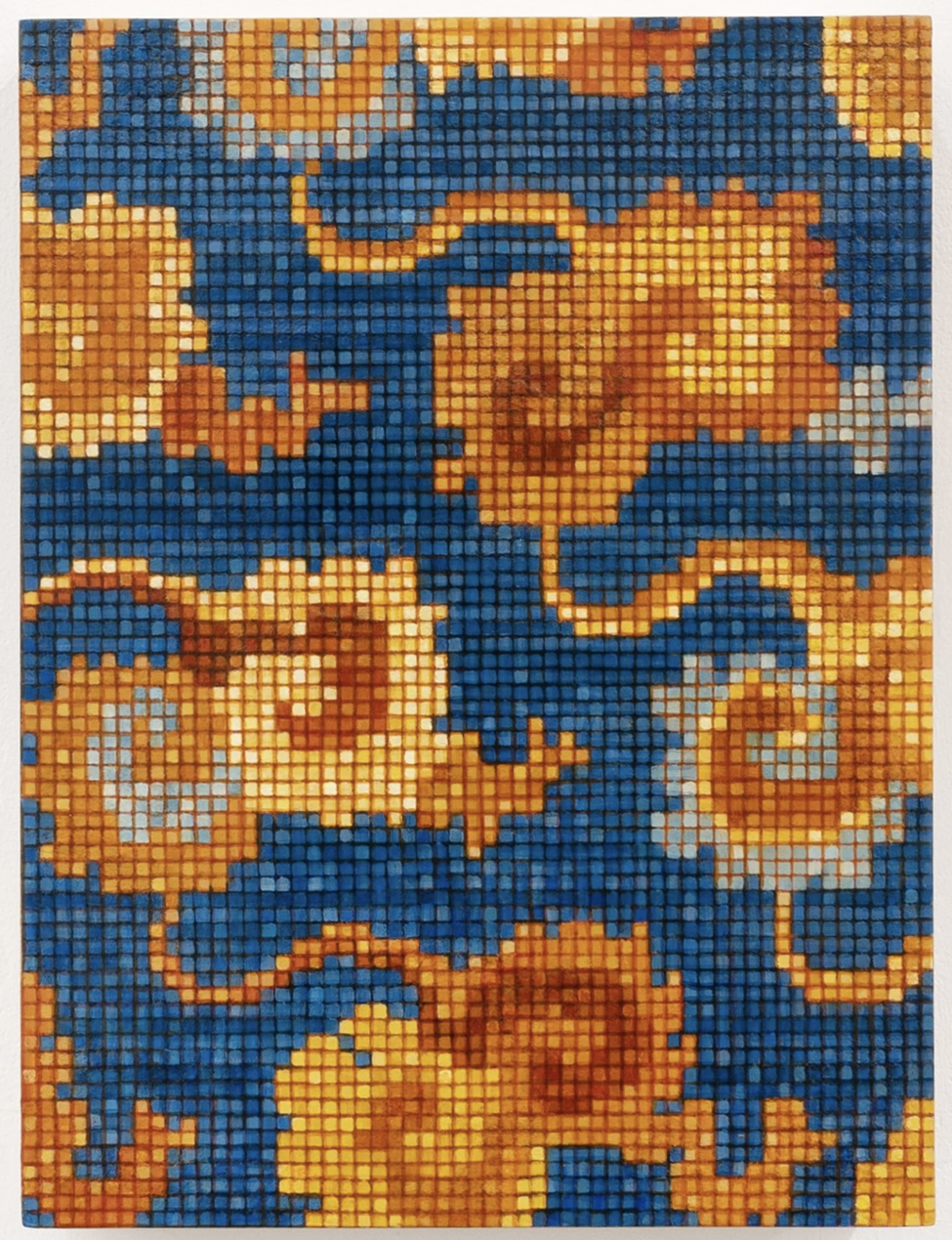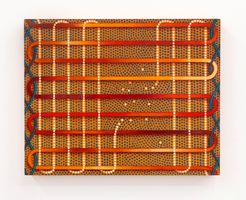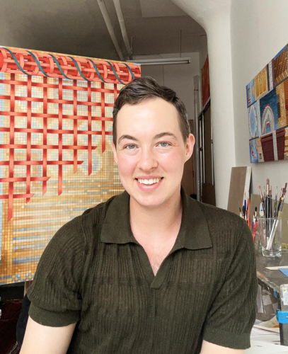 The paintings in James Gold’s solo show, Infinite Scroll, act as intermediaries between past, present and future. These glimmering grids at Morgan Lehman gallery toggle between his deep reverence for history and his active aesthetic imagination. Talking with the painter about his wider practices in collaged artist books and archeological renderings revealed new means of perception and applications of art-making.