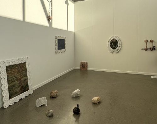 An energetic jaunt through the various art fairs over the past week revealed curious findings and trends: Relational aesthetics, atmospheric landscapes, the human psyche, and acts of care are on view in the forms of plants, animals, & organisms. Rendered in splashy colors, text-based media and kitschy coolness, the various moods are quirky and earnestly expressed through painting, sculpture/ceramics, textiles and installations. Here is a roundup of some booths that hit the mark and kept it refreshing.