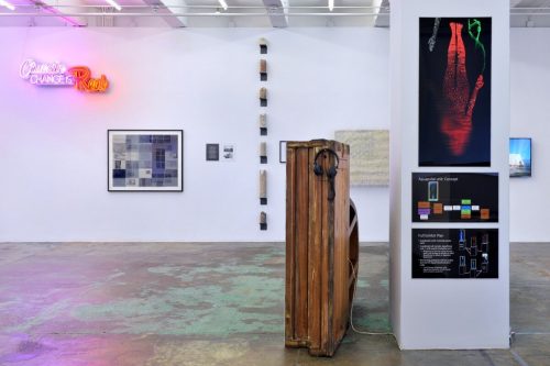 Installation view of ecofeminism(s) curated by Monika Fabijanska, left to right: Eliza Evans, Sonya Kelliher-Combs, Hanae Utamura, Betsy Damon, Aviva Rahmani, and Jessica Segall. Thomas Erben Gallery, New York, June/July 2020 (photos: Andreas Vesterlund).
