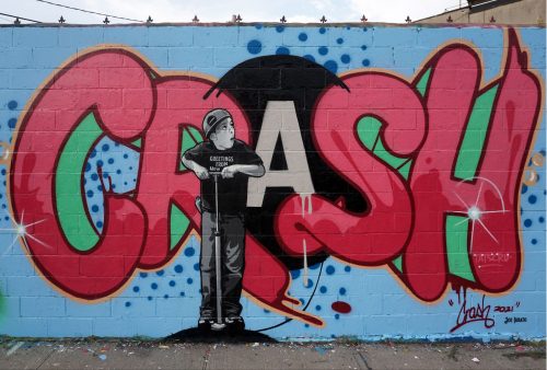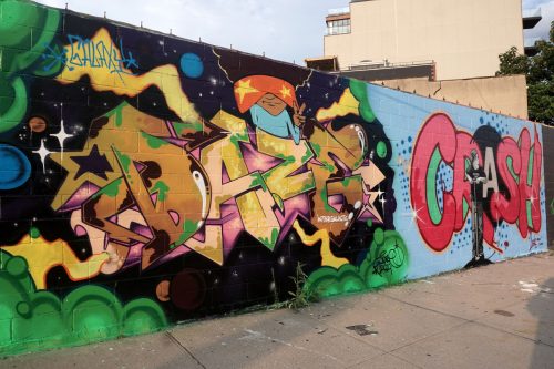 A few weeks back, an intergenerational group of five iconic NYC graffiti and street artists descended on Welling Court Mural Project (WCMP) in Astoria, Queens. The latest batch of mid-sized murals to grace this otherwise unassuming treasure trove of paint at the intersection of Main Avenue, 30th Avenue, and Welling Court includes Chris “Daze” Ellis, John “CRASH” Matos, JM Rizzi, Queen Andrea, and Joe Iurato, a world-class lineup whose collective come-up eras span the 1970s into the aughts.