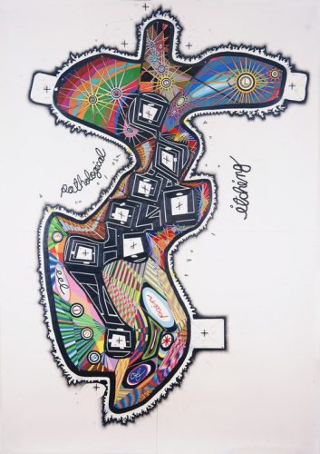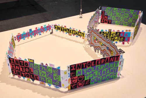 There is a hidden gem on view at Mana Contemporary in Jersey City—an art book group show of 15 artists carefully curated by the directors and curators of Monira Foundation and Mana Contemporary. The exhibition unfolds across two rooms. In the first space, the viewer encounters a dimly lit room of suspended tables uniquely designed by Kele McComsey. On each table, there is a carefully curated display of artist books—a rare opportunity to view this uniquely expressive form of art. During the run of the show, the curators periodically shift some books, while others are welcome to be handled. This is an incredible opportunity to see artist books and experience their magic. Blurring the lines between book and sculpture, these magnetic art objects have always been a curatorial challenge. They are meant to be experienced, unlike most other art pieces.