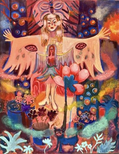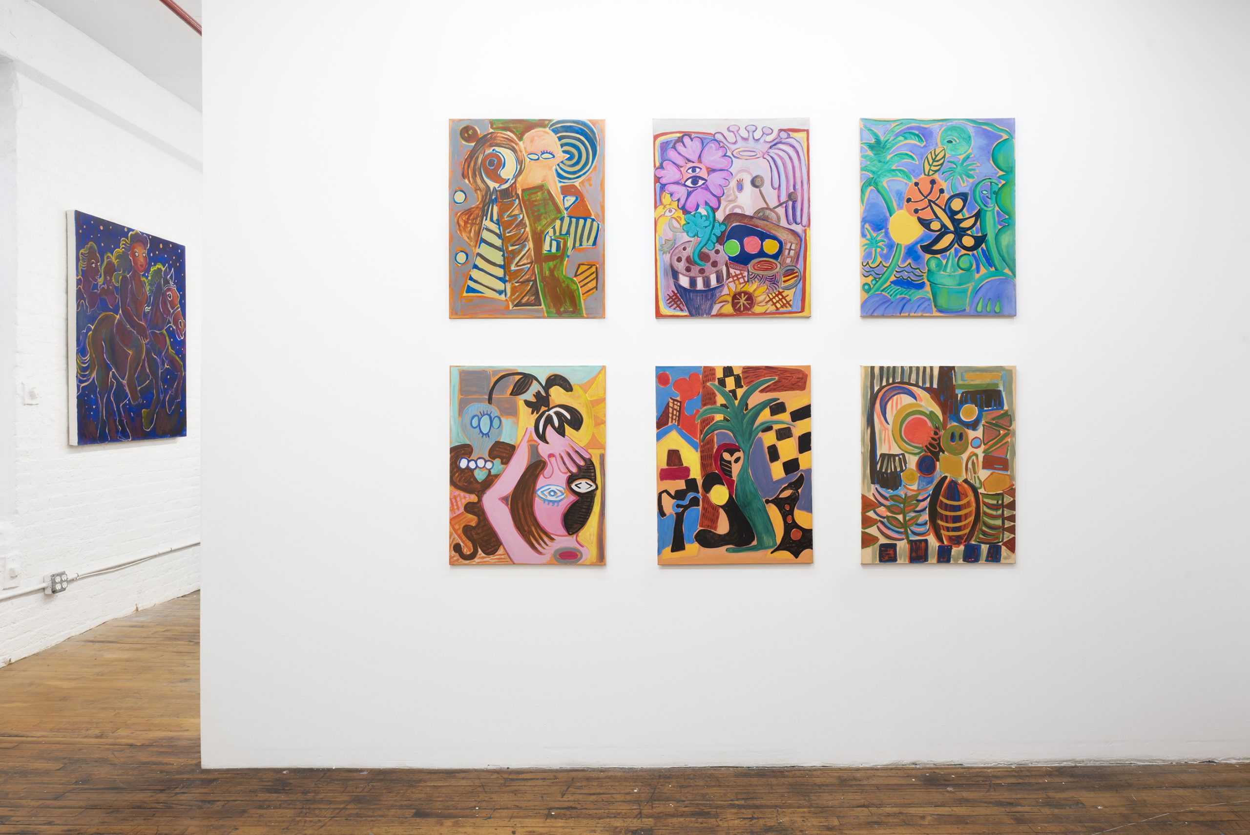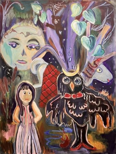 In Judi Keeshan’s first New York Exhibition, titled Mixed Magic, curators Jared Deary and JJ Manford present a wide survey of works from 2017 to 2024. To assemble the show, they selected the works directly from her studio, flipping through a massive collection of works as if browsing a record store. They let the images on canvas guide them—the characters and stories revealed themselves to the curators, just as they now await discovery by new audiences within the gallery.
