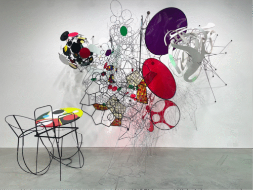 Judy Pfaff has never played by the rules—her art bends them, her teaching breaks them, and her career is proof she never needed them. A MacArthur “Genius” who reshaped installation art, she has spent five decades throwing order out the window in favor of energy, movement, and sheer creative force. That ethos is on full display at Art Cake in Brooklyn, where Pfaff and three former students have reunited—not in a classroom, but as equals in a space that refuses to sit still.
