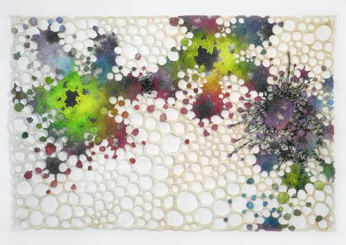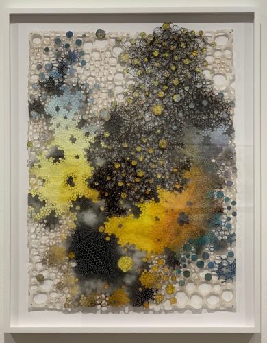 Now on view at Equity Gallery in the Lower East Side is a notable group exhibition, cogently titled Making Sense Without Consensus, with works by 14 remarkable artists and 3 astute curators at the helm. The exhibition statement says that these artists explore reality through fragmented connections and geometric materiality, “investigating whether the linearity of time is real or if past and future overlap.”