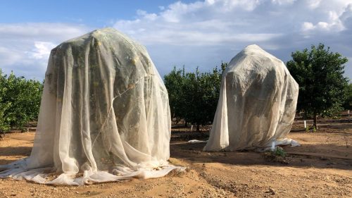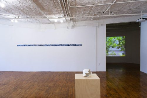 The mysterious elevator door facing the busy corner of Broadway and Canal takes you to the vast and brightly lit space of Ulterior Gallery, which is currently presenting Keren Benbenisty’s second solo show with the gallery titled Tristeza II. A continuation of a 2021 show by Benbenisty, named after the same lethal virus that infects citrus trees, comprises a series of new works in various media. At the center is a 14-minute video narrating the artist’s attempt at cultivating a blue orange, a project she has been occupied with for the past several years: The bluranj, as she named it, or Tapuchol, from the Hebrew word for orange, “Tapuz” and blue, “Kachol”. The video takes us through footage from her visits to an Israeli agricultural research institute, where she met with scientists who specialize in grafting new citrus species. They questioned her ambition – why a blue orange? Benbenisty does not offer a logical explanation but rather a poetic one. The works in the exhibition tell her personal story and provide a window into the larger narrative of the region.