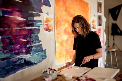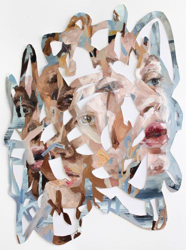 Lacey McKinney who resides in Upstate New York, is drawn to the alchemy of processes like painting and alternative photography. For the last several years, McKinney has worked within the framework of painting, using figuration to reference embodiment. Usually splitting her time between working in the studio and teaching, this year she feels lucky enough to embark on a one-year teaching sabbatical, which has given her extra time for experimentation with other media such as using cyanotype process to make photograms that incorporate into collage and mixed media works. The artist shares some insights on her body of work in Domestic Brutes, the all women group show at the Pelham Art Center which engages the visitor with diverse approaches of what feminism means in American society today.