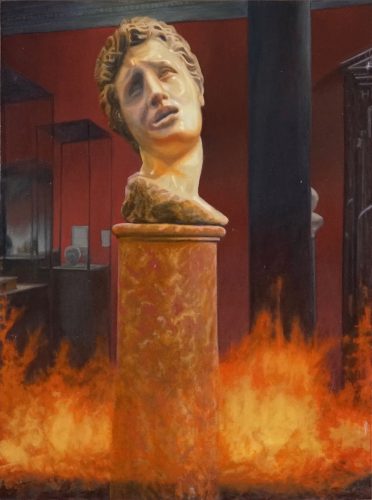 A favorite experience of mine is to visit the Metropolitan Museum without a show or work of art in mind to see. I enjoy wondering the galleries until I come across something I had not noticed before and then spend the time looking and analyzing the work. This experience is likened to one I have recently had at “Museum as Muse”, a show curated by Leigh Behnke, consisting of works by the artist herself, Joe Fig and Peter Hristoff. The show is not at a sprawling Chelsea gallery or at a small, but relevant Lower East Side venue. It is tucked away within the confines of an academic institution, School of Visual Art, located on 21st Street in the SVA Flatiron Gallery Project Space. As the title suggests, all three artists have used the museum in some capacity as a starting point for their work.