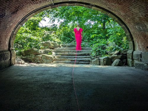 Lilac Madar, best known for her photomontages and assemblages exploring feminist themes, turned to performance in the wake of October 7, 2023, as she began to grapple with mounting evidence of atrocities committed during the Hamas-led massacre in Israel—including the rape, sexual brutalization, and murder of women. Her grief made creation feel impossible—until a vision emerged: she was lost in Central Park, leaving a trail of pink thread behind her. PoppyPink, for her, is an act of remembrance—a body unraveling in real time, marking the absence and memory of the women violated and silenced. Named in part for artist Inbar Haiman (Pink), murdered at the Nova festival, the performance aims to affirm what art demands: to witness, to endure, to insist on presence. In this interview, we take a closer look at the project and its origins.
