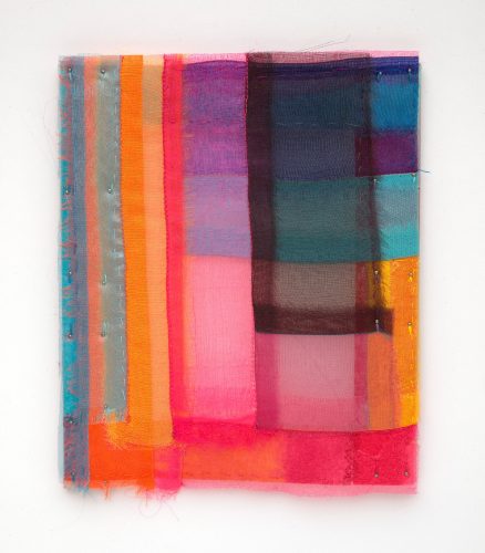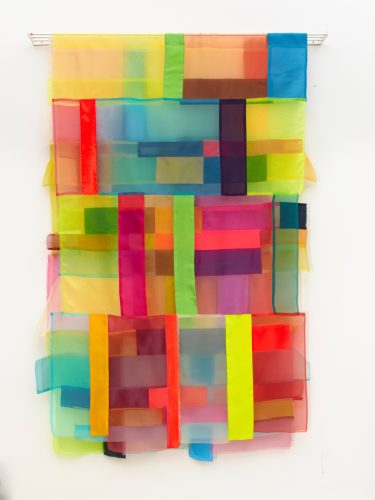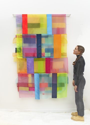 Linda Kamille Schmidt’s exhibition Fiber Space opens at Garvey|Simon Gallery on June 27, 2024. This is her first solo show with Garvey|Simon and her third in Manhattan. It showcases her semi-transparent fabric collages, ranging from large installations to smaller, intimate pieces.