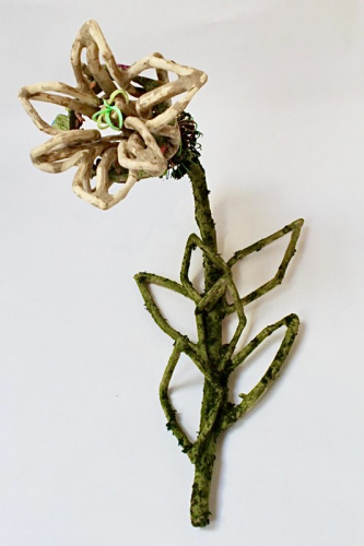 Loren Eiferman sees her work as the “ultimate recycling”. She collects sticks and branches that have fallen to the ground and typically forms her sculptures by joining together hundreds of small pieces of wood into a cohesive whole through a unique technique she has developed for over 25 years.