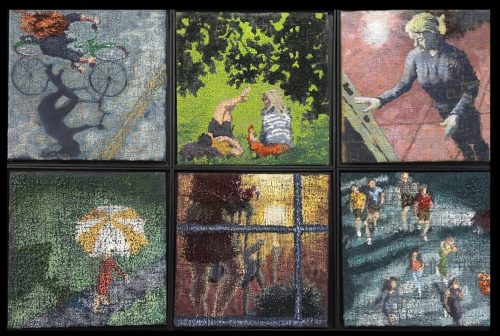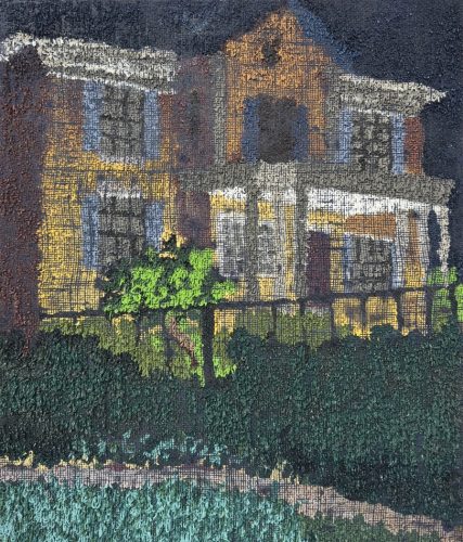 The paintings in Margaret Koval’s latest exhibition, The Uncanny Valley of Everyday Life, capture a sense of disorientation—recognizable urban and suburban scenes where something is slightly off. They are rich in color and composition, drawing viewers in with pleasing views, yet an underlying unease lingers. Like waking up to find someone has rearranged your furniture overnight, they create a feeling of estrangement within the familiar.