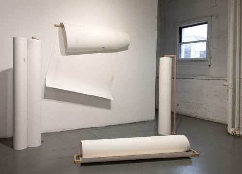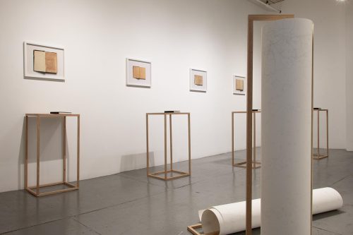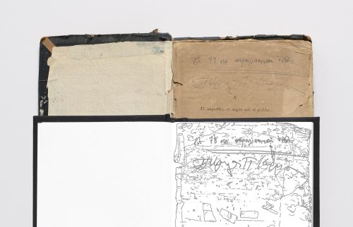 During her solo exhibition at the NARS Foundation, artist Marina Kassianidou spoke with Mary Annunziata, who previously curated Marina’s work, A Partial History, as part of the inaugural Immigrant Artist Biennial in 2020. In her exhibition at NARS, Marina presents new work inspired by her grandmother’s collection of 19th and 20th-century schoolbooks from Cyprus. On display are four photographs of selected pages from these books, four artist’s books that recreate the full original texts, and four large sculptural drawings. The show celebrates a call and response with ancestors’ material history, showcasing Marina’s time-intensive artistic process in which she works with surfaces found in her surroundings, such as walls, floors, fabrics, paper, and screens, and experiments with ways of marking that respond to the surface’s appearance, use, or history.