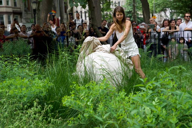 Surrounded by the rolling meadow in McGolrick Park, the orb represents the collective portrait of the diverse Greenpoint community, with an emphasis on participation of the many Poles who have lived in the neighborhood for generations. Martynka Wawrzyniak shares with Art Spiel the ideas behind her intriguing public art project, as well as some thoughts regarding her overall art practice.