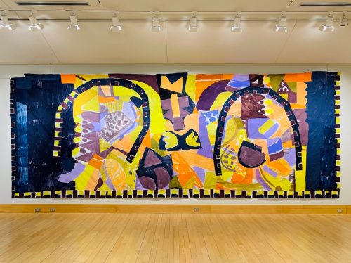 Alignments at Flinn Gallery in CT is a three-person exhibition featuring abstract work by Meghan Brady, Ben Godward, and Erika Ranee, curated by Tracy McKenna. The work triangulates around shapes and strata. It runs through January 26th, 2022.