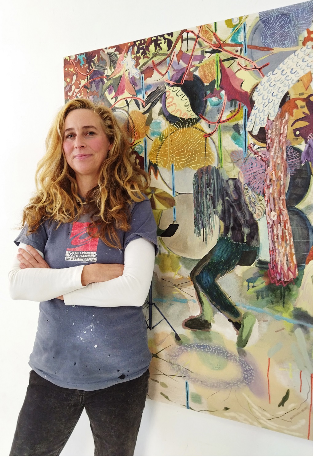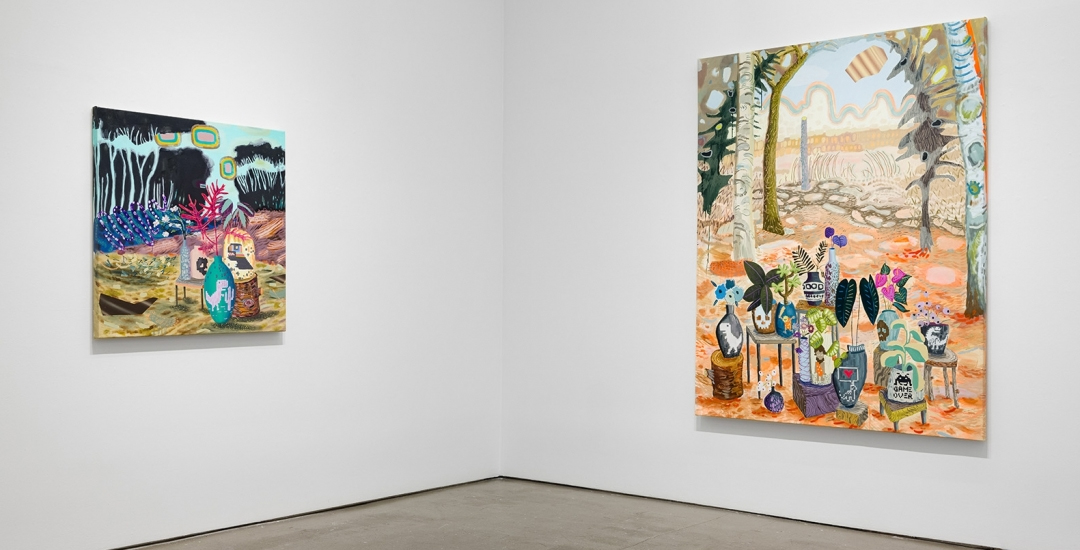 The oil paintings featured in Shadow Weaving, Melanie Daniel’s second solo show at Mindy Solomon, depict magical landscapes of forests, ponds, and their inhabitants—a moth, a pair of coyotes, a beetle, an occasional mystical spirits. The paintings begin for her as meditations and transform into fleeting environments—both hallucinatory and recognizable. The show runs through March 18th. 2023.