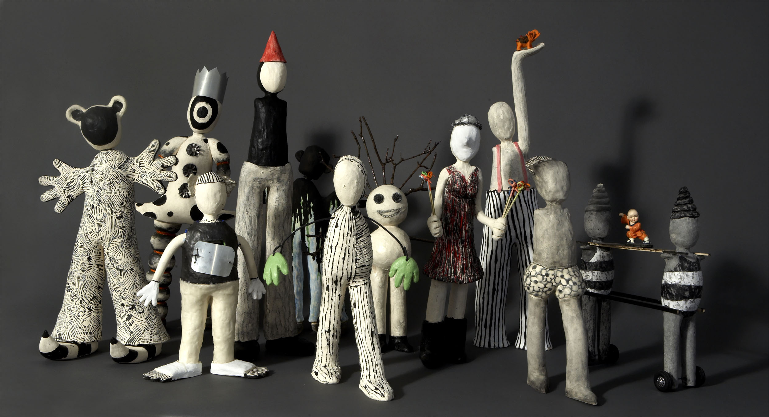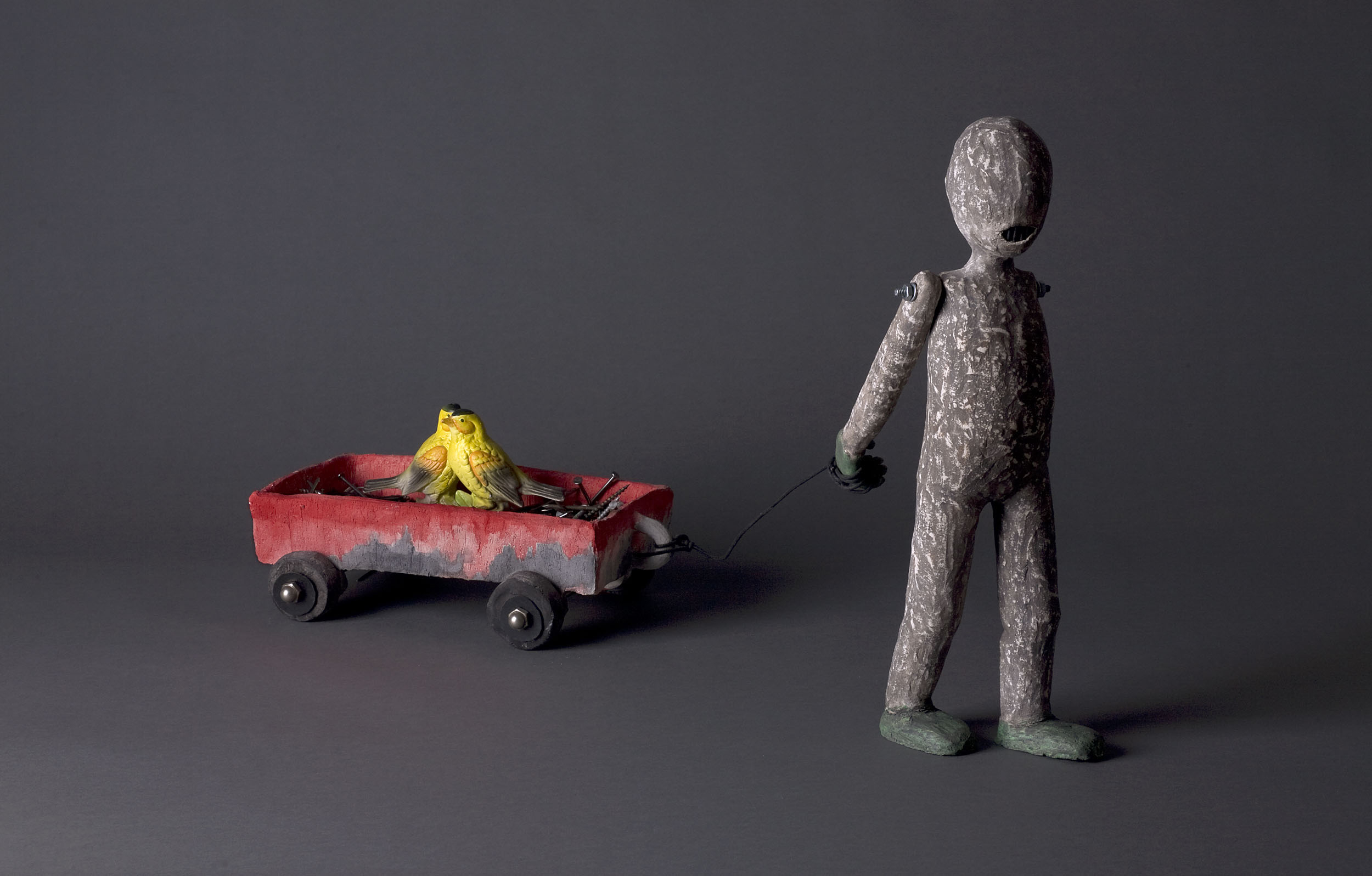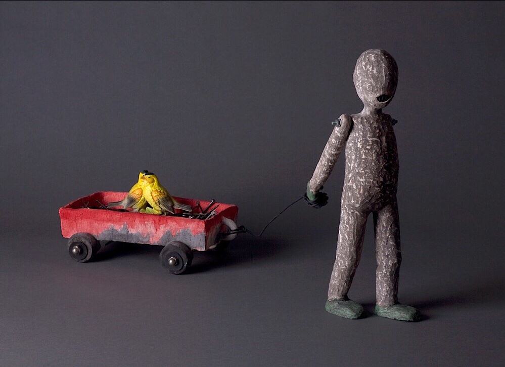 Melissa Stern is an artist, working in mixed materials and across genres. She is interested in ideas that are simultaneously funny and dark- that is, “work that might make you smile or laugh, but with a wee bit of discomfort,” as she puts it. Much of her work of recent years focuses on home and childhood and the ways in which our childhoods and our memories haunt our lives. She works in clay, found objects, wood, metal collage and various drawing materials. Her goal is that the materials she uses are at the service of the ideas. On a different note she says, “I am an only child, raised by older parents who were first generation Americans. My mother desperately wanted to be ‘American’. My father was very connected to his European heritage. This push and pull; between belonging and being an outsider has profoundly influenced my life as an artist.” Melissa Stern is participating in Domestic Brutes at Pelham Art Center.
