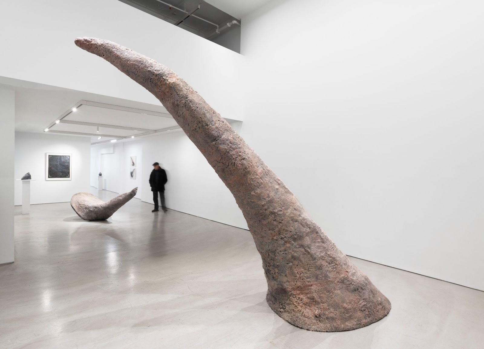 When I enter Nunu Fine Art in SoHo, New York, my body registers Mia Westerlund Roosen’s work before my mind does. Two tall forms, Heat (1981) and Conical (1981), lean into the room with a quiet insistence, their weight felt rather than announced. They rise from the floor with muscular arcs, tapering upward, commanding space without spectacle. I slow down instinctively, adjusting my path. These are not sculptures to be glanced at; they ask to be circled, negotiated, endured.