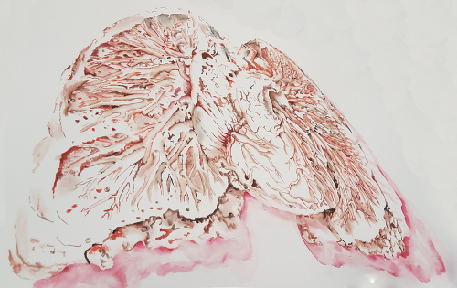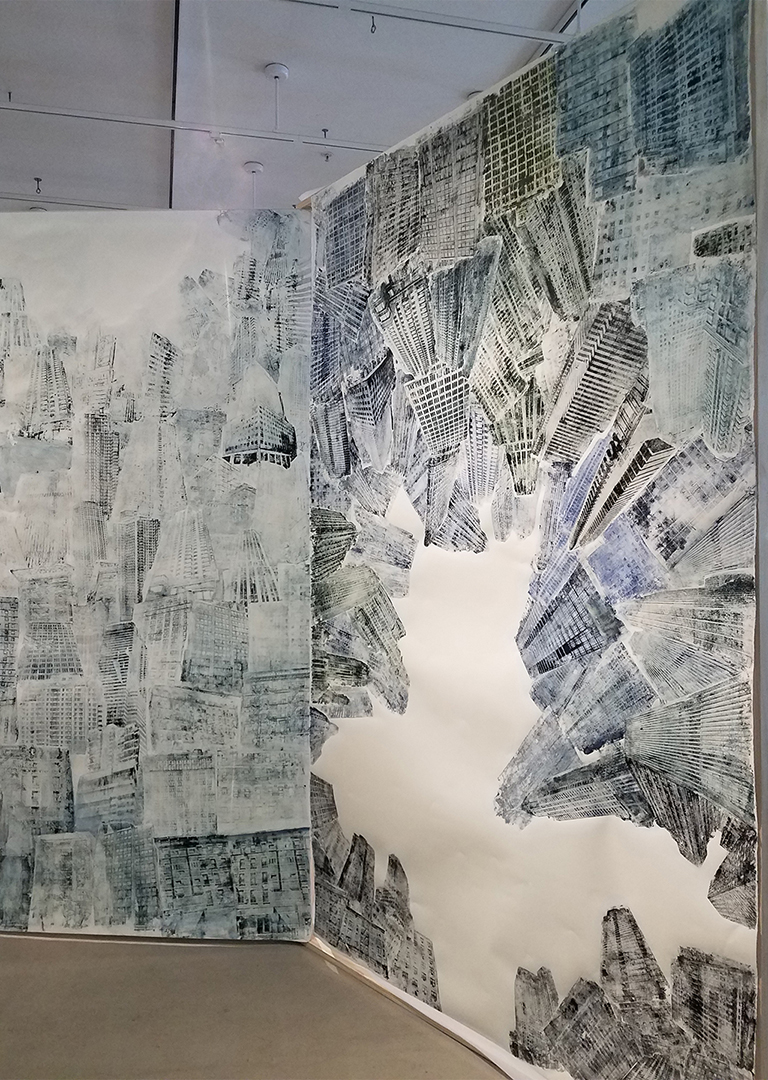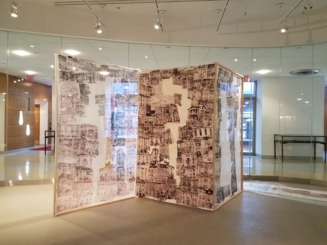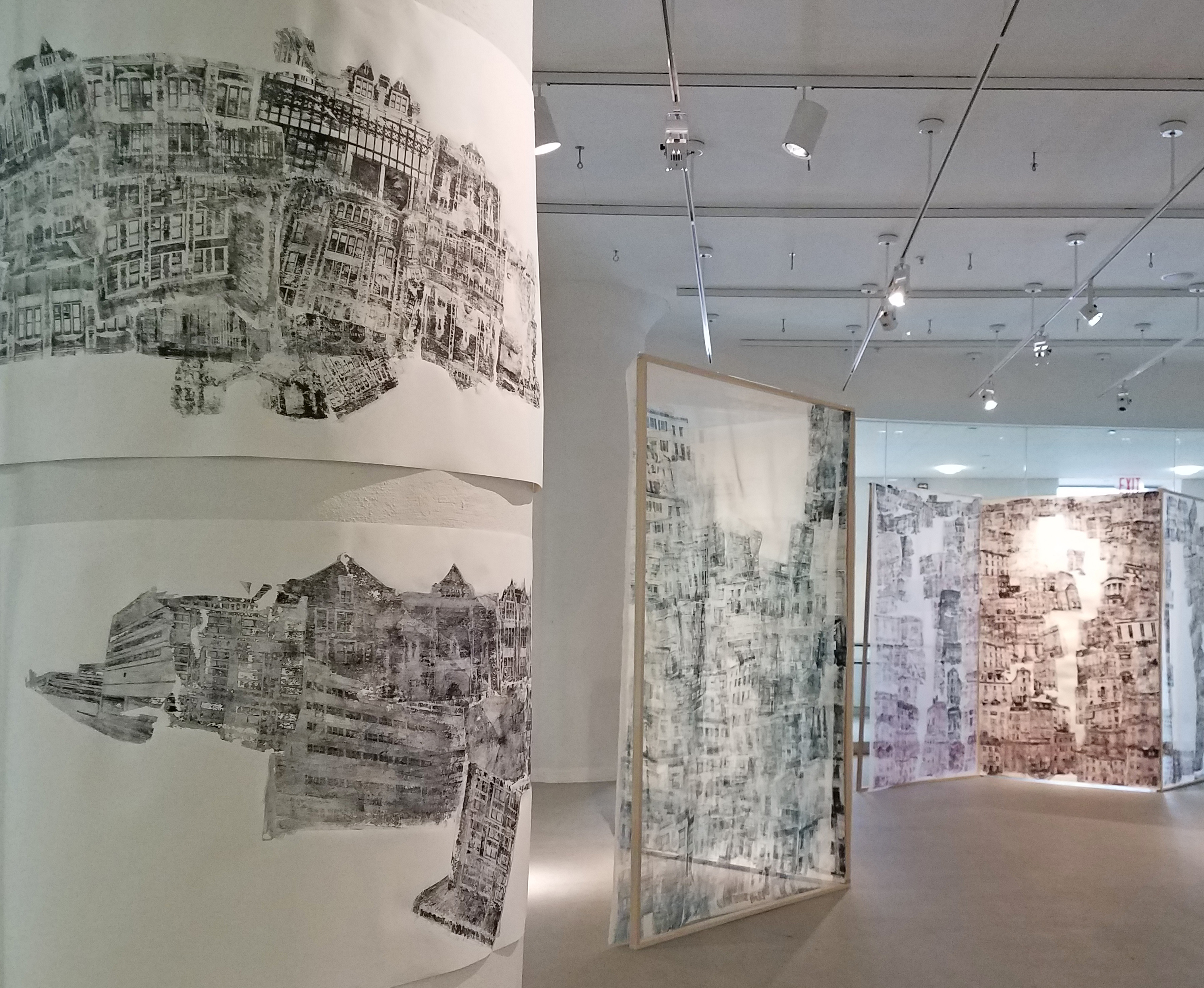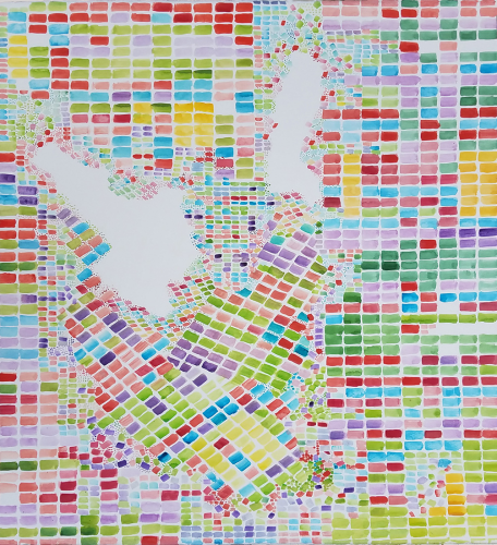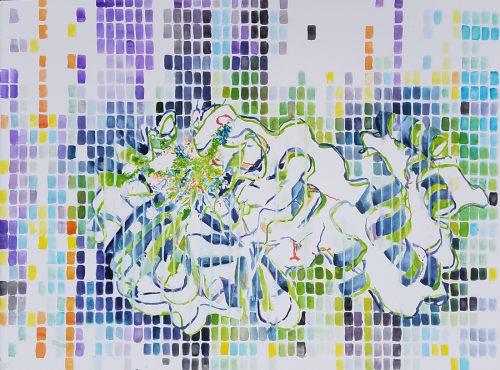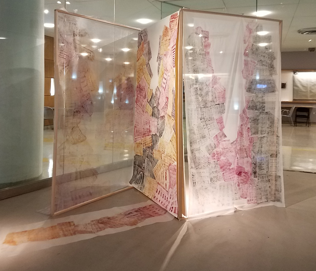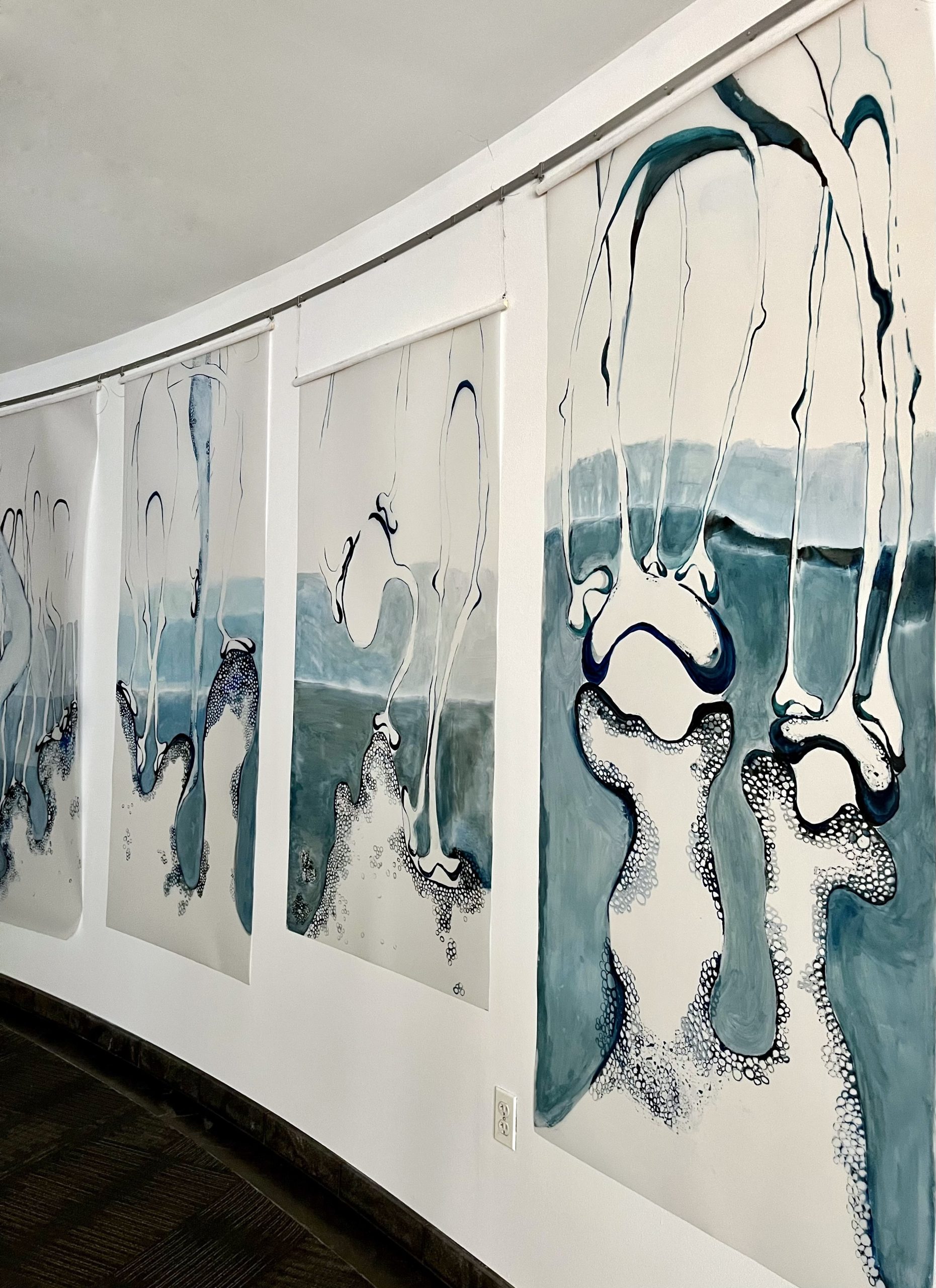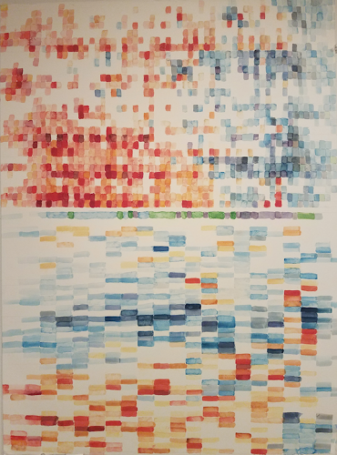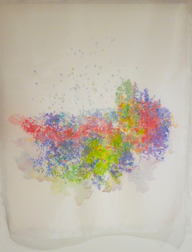 In planning her new exhibition at the AAAS gallery, artist Michal Gavish envisioned painted images of neurons enveloping the spiral-shaped gallery space, extending upward, downward, along, and away from the walls. Following an extensive phase of research and creation, spurred by personal family tragedies, Gavish created Neuro Land, a field guide to neurons. She devoted a piece to representing each type, painting a set of larger-than-life nerve cells images on fabric and paper. Gavish later assembled these pieces layer by layer, echoing the scientific method used in constructing representations of the unseen—similar to how MRI technology captures internal snapshots in segments and reconstructs them in three dimensions. While engaging with this invisible realm, Gavish reflected on her former practice as a scientist, interrogating the expansive vistas revealed through IR, X-ray spectra, or under the electron microscope.