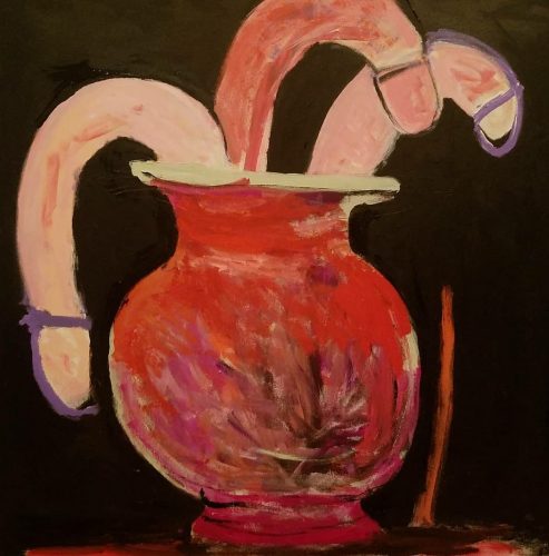 From Manhattan to Brooklyn, there is funny business happening in the galleries this holiday season, quite literally. Portraits of humorous creatures in a solo exhibition titled Donut Dog by Nancy Elsamanoudi at Doghouse Gallery are an opening act to the performances at the Brooklyn Comedy Collective. Slightly absurd paintings of “Lost” posters by Jeffrey Morabito crack a joke in a two-person exhibition titled Flat Theater at Space 776 (CLOSING DECEMBER 18th), while a humorous undertone sets the mood in the Paintings and Chairs group exhibition at Zepster Gallery.