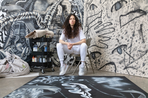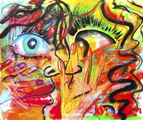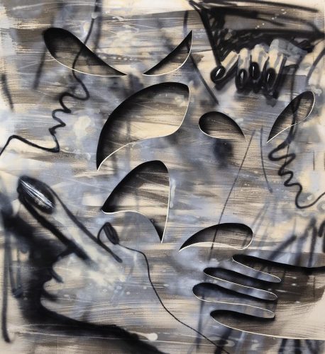 Natalie Westbrook’s exhibition at ZYNKA Gallery in Pittsburgh features new paintings on canvas and drawings on paper. Westbrook depicts faces as thick lines immersed in saturated hot pinks, greens or monochrome gradations—altogether fluctuating between the monstrous and the angelic, the scary and the pathetic. Sometimes they are solitary and sometimes they indicate twins or perhaps a fragmented self. In her catalogue essay on Natalie Westbrook’s work, Larissa Pham observes that Faces “come for you, leering, grinning, mouths a garish lipsticked rictus of joy, embedded flat against the canvas, their features seeming to emerge from the psychological fabric of the painting itself.”