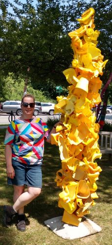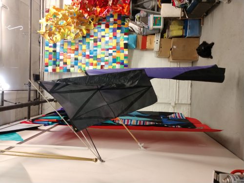The three-person show Travelers, Liars, Thieves at Garrison presents the work of artists Margaret Lanzetta, David Packer, and Niki Lederer, who also curated the exhibition. Margaret Lanzetta’s paintings, crafted with acrylic on satin, cotton bedsheets, and sari fabric, explore the fusion of decorative traditions from various cultures, reflecting interconnectedness between cultural and political narratives. Niki Lederer’s artwork, made from repurposed discarded materials such as umbrella canopies and nylon threads, highlights environmental concerns. David Packer’s bear sculptures serve as a metaphor for personal, economic, and political upheavals. Collectively, the three artists re-imagine the world with united boundaries, new environmentalism, and migrating identities.