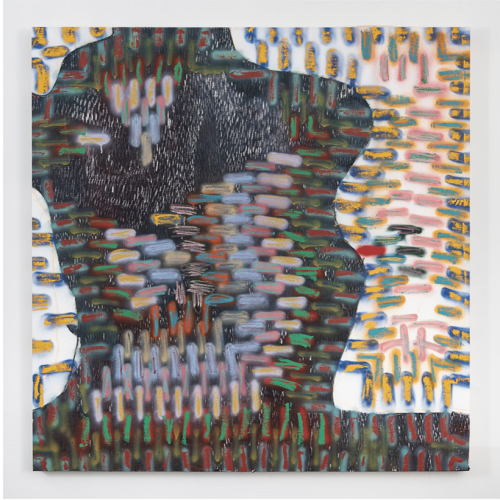 Prior to her exhibition, Phantom Thread at Freight+Volume, Paige Beeber spoke with Amanda Millet-Sorsa at the artist’s studio in Brooklyn. Nestled into a Cube Smart storage space building in Gowanus on the edge of Red Hook, the studio is part of TI Studios. Beeber’s long family roots in Brooklyn date back to the early 1900s, as she continues to live and work in this borough. Her new work evolved from experiences she had at residencies in 2022 (DNA Residency in Provincetown, SARP in Sicily, and recently completed her fellowship at The Helene Wurlitzer Foundation). Her work exists between narration, figuration, and abstraction and largely uses the repurposing of her own past paintings that transform into new patterns, motifs, and imagery in new paintings. Ritual and community play an essential role in the stitching of new narratives.