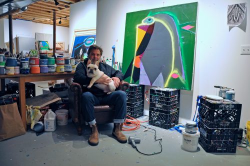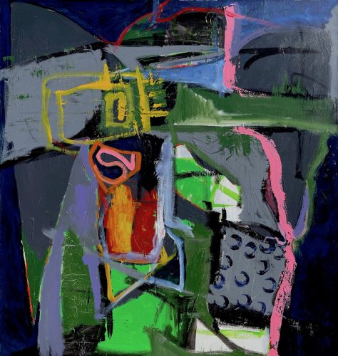 Paul Behnke is a champion of painting – and he does it with evident gusto. His paintings come from idiosyncrasies, life experience, and a process that begins as intuitive, mixed with periods of sharp critical gaze. His paintings have evolved from early contained and minimalistic bold-color geometries, to more recent chaotic forms and layered complexity, at times almost explosive.