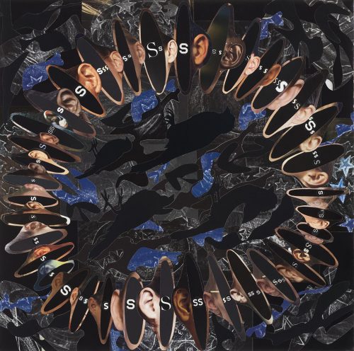 Paul Loughney’s collages resemble daydreams where seemingly unrelated elements coalesce into a fantastic mindscape where body parts, typography, geometric shapes, and hints of architectural elements scramble into unique environments that are oddly believable despite their quirky nature.