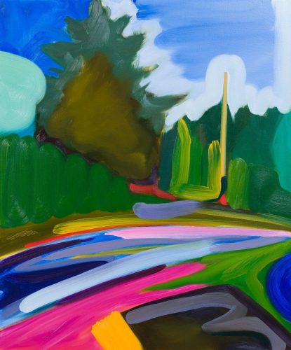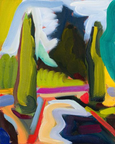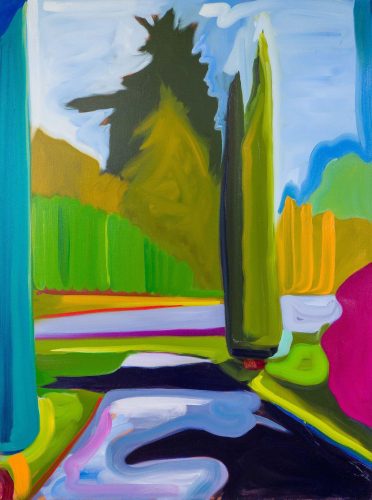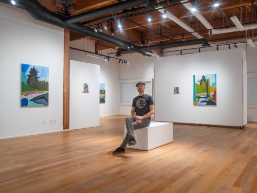 10989 Dunlop Road features Peter Gynd’s recent oil paintings, inspired by the tranquil garden of his mother’s home in kwekwenis (Lang Bay), British Columbia. This series captures the shifting essence of cedar and fir trees that stand at the garden’s entrance, embodying themes of rebirth and spiritual renewal. Each painting serves as a reflection of Gynd’s connection to this place of refuge during a pivotal time.