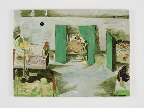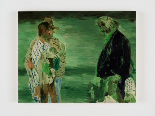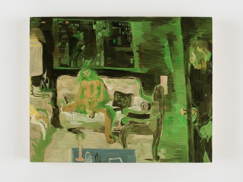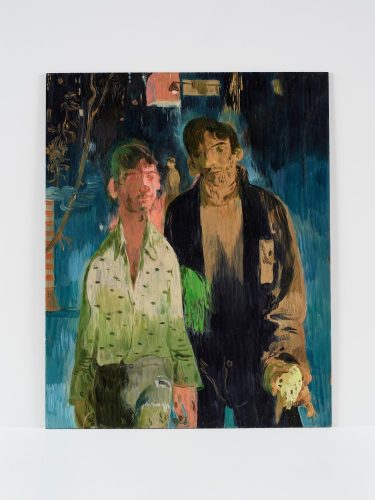 This exhibition of Salman Toor’s paintings acts like snapshots in a story or a movie, each depicting a separate experience. Every piece draws you in and carries a true push and pull within the composition. The push and pull that drew me in was the idea of public versus private that emanates from within the work, the dream and reality, and just how much intimacy Toor decides to share with us. The feelings of intimacy and vulnerability come from witnessing the lives of the figures Toor presents, leaving us to wonder if we are allowed to bear witness to these moments, or if we’ve just “walked into” something meant to be entirely private.